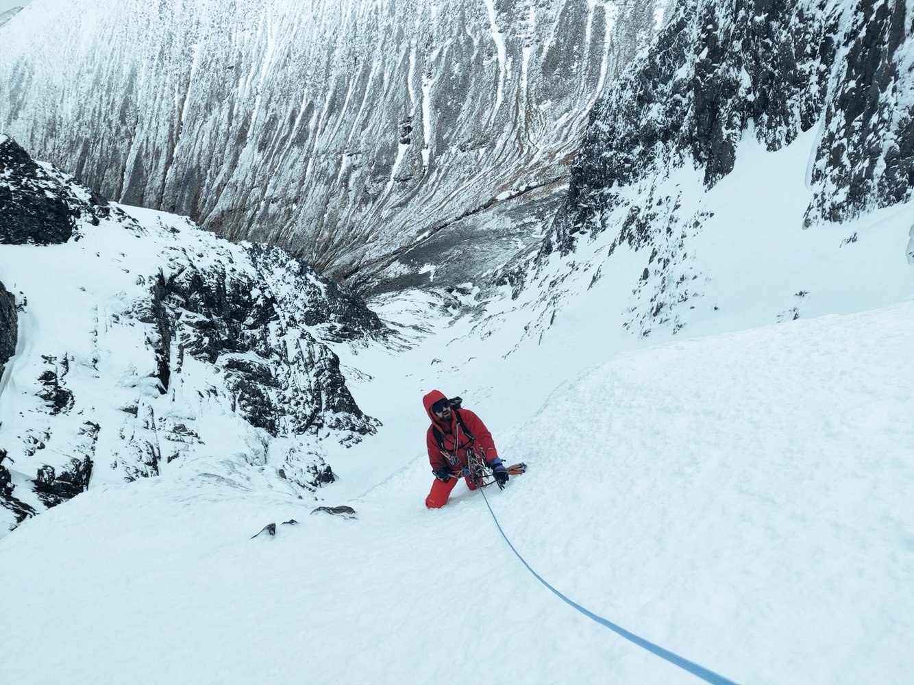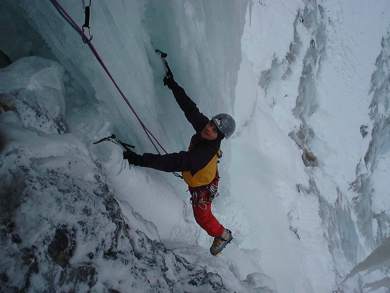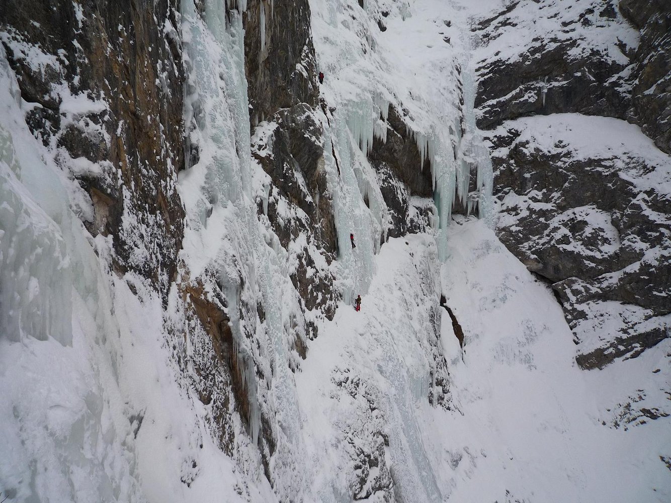 Bei Temperaturen um die –4 Grad erreichten sie das Gebiet. Schon der Zustieg zeigte die hervorragenden Eisverhältnisse, und beim Anblick der Linien bestätigte sich dieser Eindruck: Das Eis war so mächtig wie selten zuvor. Besonders die Säule des Blauen Engels präsentierte sich noch eindrucksvoller als wenige Tage zuvor, als Markus sie mit einem anderen Partner geklettert war. Die drei beschlossen, in dieser Linie einzusteigen.
