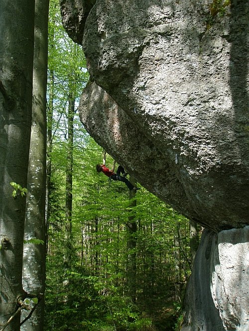 Am 19.5.08 klettert Adam den 1991 von Wolfgang Güllich eröffneten Markstein im Frankenjura. Adam ist derzeit in absoluter Topform, so konnte er dieses Jahr neben La Rambla Extension (9a+) fünf 9a (11) Touren klettern.