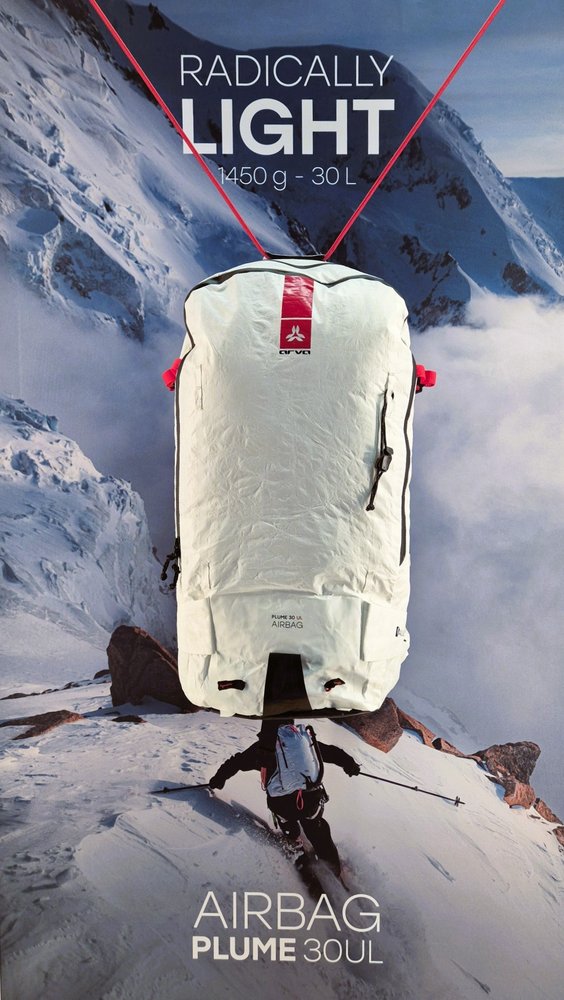 Arva: Zeigt den Plume 30 UL (Extra Plume 30 UL Artikel mit mehr Details)- das ist der vermutlich leichtestes 30 Liter Lawinen-Airbag auf dem Markt. Siehe eigenen Artikel Plume 30 UL.