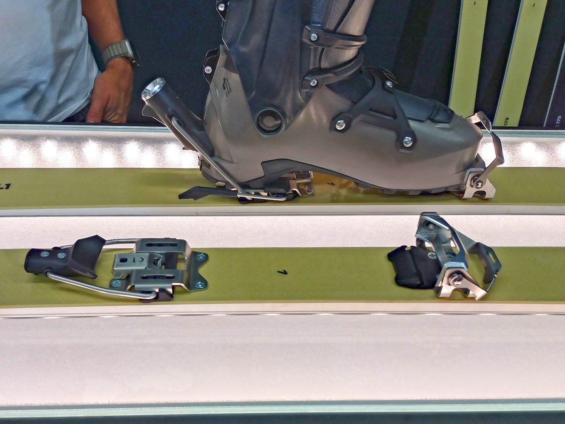 Atk-Bindings: Der italienische Bindungsspezialist stellt seine neue Hy eine ultralichte, hybride Freeridebindung vor, bei der man den Vorderbacken zwischen Pin- und traditioneller alpinen Skibindung umstellen kann.