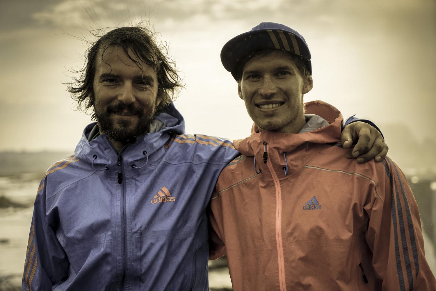 Per Münzwurf losten die beiden Freunde aus, wer nach der langen Vorbereitungszeit als erster seinen Fuß auf die Highline setzen durfte. Reini Kleindl hatte Glück und kam zuerst in den Genuss, die extremen Bedingungen auszutesten. „Aus den Bergen habe ich Erfahrung mit Schnee, Regen oder Wind, aber dieser Sprühnebel, der von unten hochkommt, die Line mit Wasser durchtränkt, sie schwer macht und einem die Sicht nimmt, ist schon eine besondere Herausforderung“ so Kleindl.