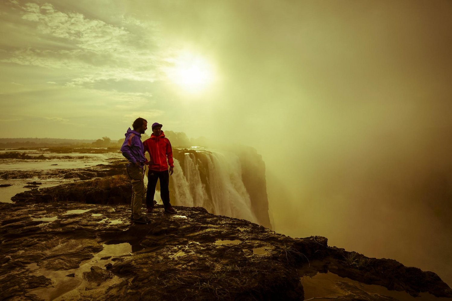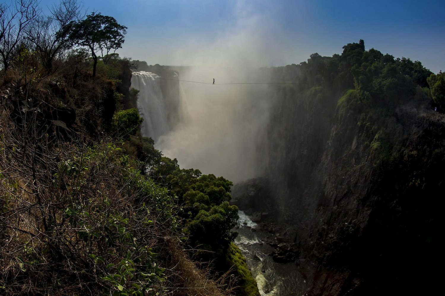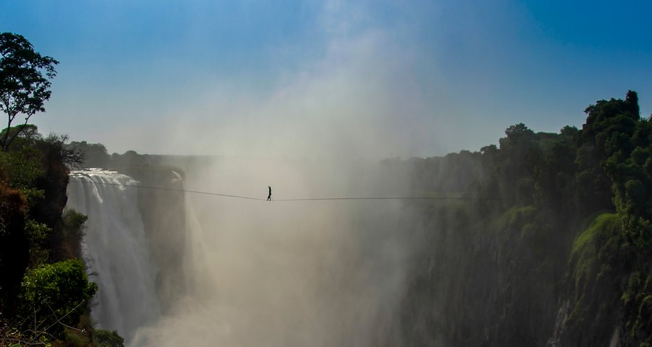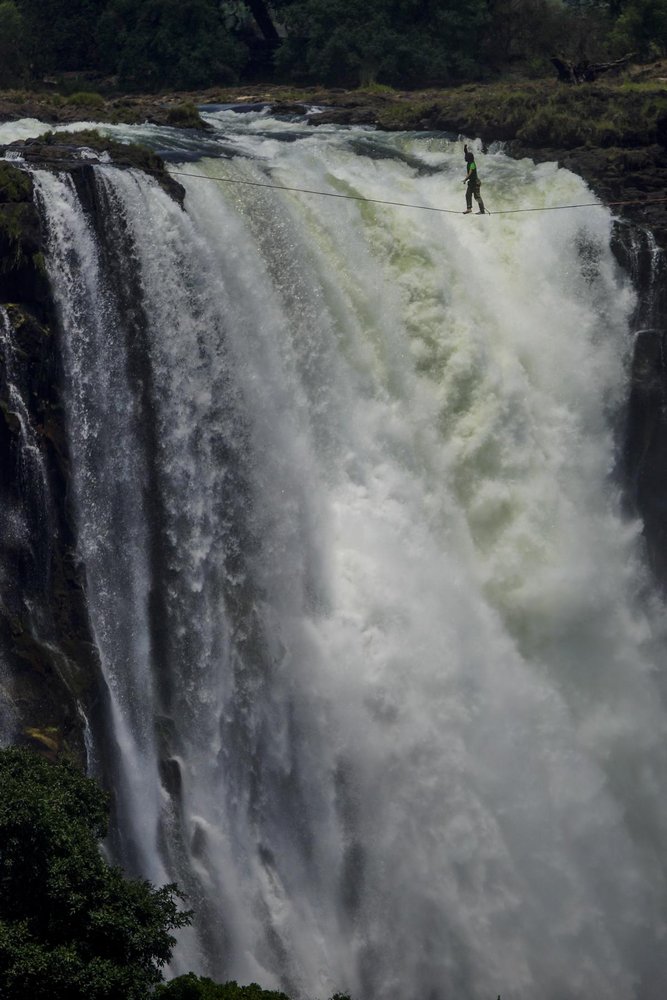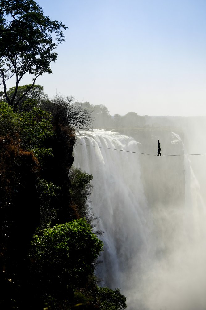 „Wir sind immer auf der Suche nach tollen Locations, an denen wir unsere Highlines spannen können“, sagt Reinhard Kleindl. „Lukas und ich haben uns in diesem Zusammenhang vor rund zwei Jahren eine Menge Wasserfälle angeschaut. Die Bilder der gewaltigen Victoriafälle haben uns auf Anhieb begeistert, doch wir waren der Meinung, dies sei eine Nummer zu groß für uns. Allerdings sind wir die Idee nicht mehr losgeworden.“