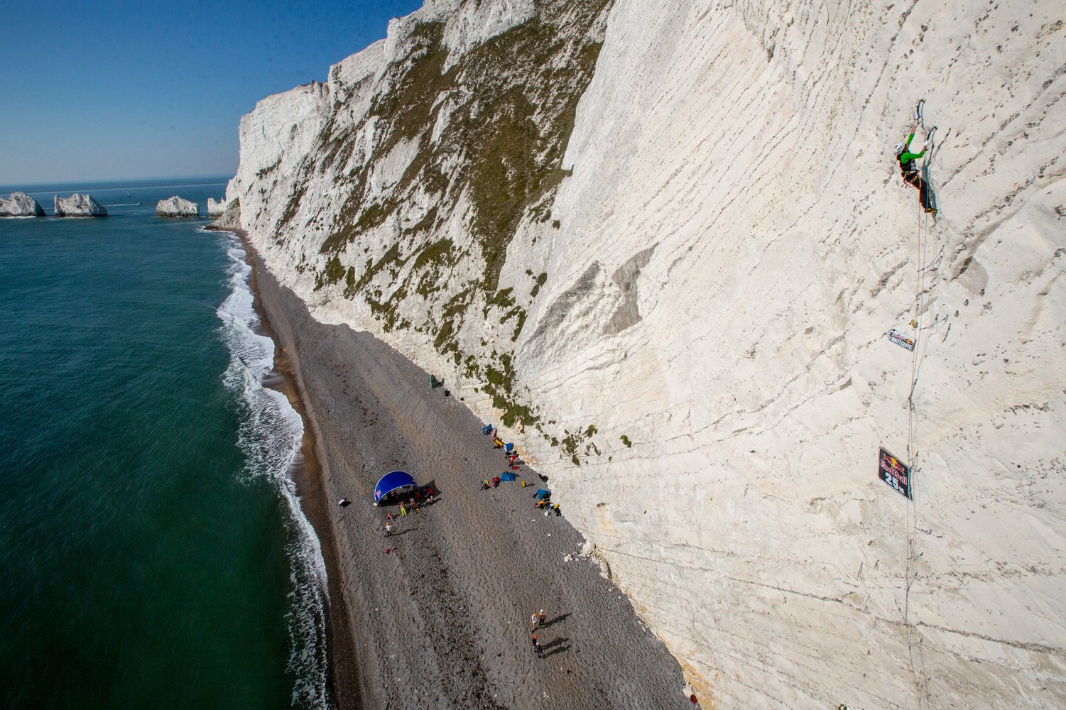 Bei Wetterbedingungen, die mehr an Mitte Juli als Anfang Oktober erinnerten, setzten 15 der weltbesten Eiskletterer mit einer Fähre vom Festland zum wunderschönen und rauhen Küstenstreifen der Isle of Wight über, um an den 115 m hohen Kalkklippen über dem Scratchall Bay zu klettern. Es ging darum, die 115 m hohe überhängende Kalkklippe in der kürzest möglichen Zeit zu bewältigen. Die Kletterer gingen das gesamte Wochenende voll ans Limit was Ausdauer und Klettertechnik anbelangt.