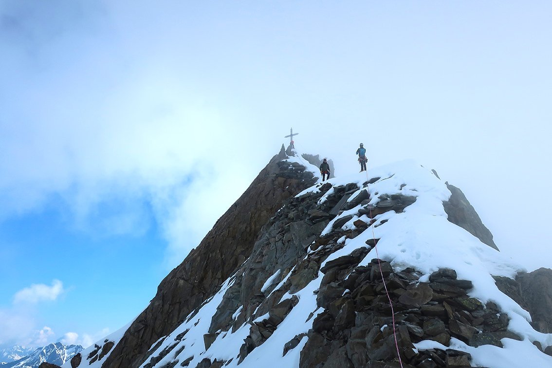 Nun sind die Voraussetzungen für eine sichere Hochtour gegeben, allerdings müssen die verfügbaren Sicherheitsvorkehrungen auch ergriffen werden. Wer ohne Seil klettert oder ohne Gletscherausrüstung auf einen Gletscher geht, riskiert unter Umständen sein Leben.
