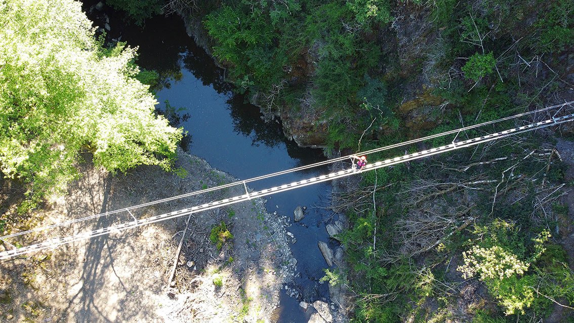 Die Vulkaneifel in Reihnland-Pfalz ist vielen nur von Wanderungen (Eifelsteig), Radfahren und von den malerischen und zum Baden idealen Vulkanseen bekannt. Als neues Klettersteig Zentrum in Norddeutschland kann man getrost Manderscheid bezeichnen. Wurde doch mitten im Ort, wunderschön angelegt zwischen Burgen und entlang der Eifel eine richtig gute Ferrata gebaut. In drei Etappen geht man - beziehungsweise klettert man - zuerst entlang des Baches, dann hinauf zur Burg (es heißt ja Burgenklettersteig) und am Ende hinter der mittelalterlichen Turnierweise am Burgfelsen entlang zur großen Hängebrücke, welche das perfekte Finale darstellt.