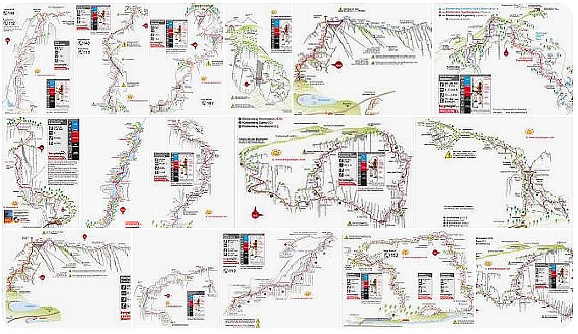 Wir - das sind die Jentzsch-Zwillinge und Dieter Wissekal - sind seit vielen Jahren unterwegs, um Klettersteige zu erkunden. Wir haben die Klettersteigtopos, welche wir schon während der Tour als grobe Skizze beginnen und dann am PC zur Perfektion bringen, auf ein sehr hohes Niveau gebracht. Das schätzt nicht nur die große Gemeinschaft der Klettersteiggeher, sondern auch die Erbauer klopfen am Ende der Bauphase bei uns an und wollen, dass wir ihre neue Kreation fachgerecht dokumentieren. Wir haben unsere Arbeit mittlerweile in viele - immer orange - Klettersteigführer verpackt. Auch der "Klettersteigführer Deutschland" ist eines unserer Standardwerke, in dem ein guter Überblick über die Ferratas in Deutschland geboten wird. Seit der Verknüpfung mit unserer Touren-App kann man das immer dickere Guidebuch getrost zu Hause lassen, auch ist man mit der Touren-App (deren Zugang es auch einzeln gibt) immer auf dem neuesten Stand.