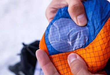 Ein RECCO-Reflektor erhöht die Sicherheit. Die Jacke ist reparaturfreundlich konstruiert, mit durchziehbarer Reepschnur als Notverschluss und beiliegendem Flickset für unterwegs.