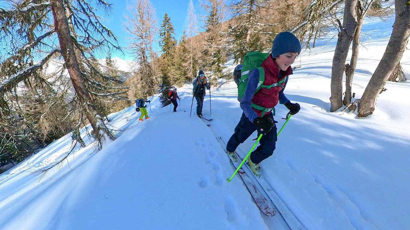 Skitourengehen startet für Jung und Alt mit guter Skitechnik. Das Gehen auf den Fellen ist technisch nicht schwierig und kann mit ein wenig Übung schnell erlernt werden. Am wichtigsten ist, dass Sie in jedem Gelände und bei allen Schneearten sicher abfahren können. Dies gilt sowohl für Erwachsene als auch für Kinder.