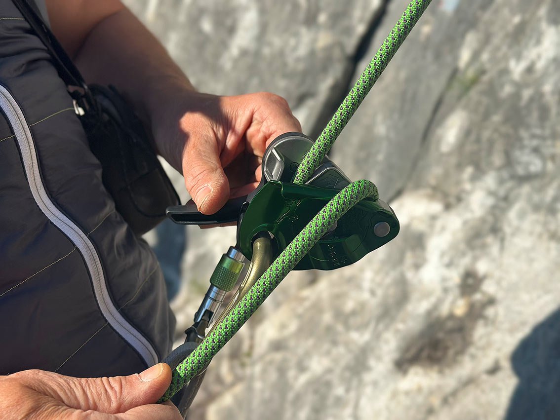 Wenn man wie wir viel mit dem normalen Grigri oder Neox sichert und dann auf das Grigri + wechselt, kommt anfangs ein kleines Aha-Erlebnis Beim für uns gewohnt schnellen Ablassen wird die Panik-Funktion anfangs doch recht oft ausgelöst. Man beginnt, etwas nachzudenken und reduziert die natürliche Ablassgeschwindigkeit etwas. Vor allem in Bodennähe ist langsameres Auf-den-Boden-Kommen sicher die vorteilhaftere Option und so lernt man auch als Grigri-Kenner wieder etwas dazu.