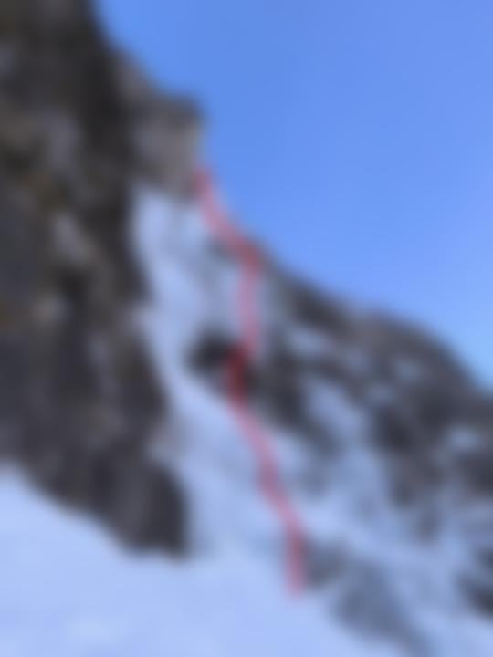1. pitch Mixed route direct overhang rock and ice( M6+ WI5+), 2. pitch on righ side mix rock slab and ice(M4+, WI5). 3.pitch same like clasic ice on the top (Commes des Cargons), No bolts protection in the route.