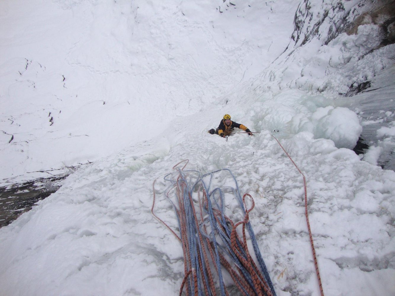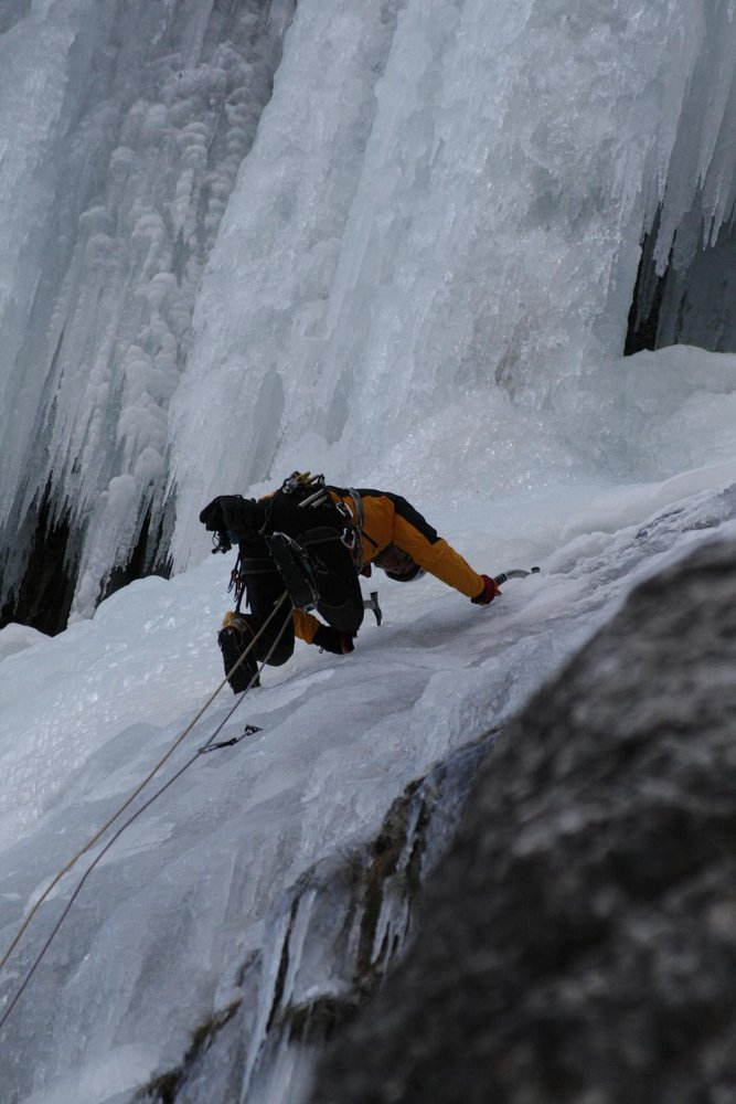Mittelschwerer Eisfall/Mixedtour in einer fürs Eisklettern nicht bekannten Gegend. Für sich alleine wäre die Route in Anbetracht der Zustiegszeit nicht so lohnend, jedoch zahlt sich ein Besuch mit der Vielzahl an benachbarten guten Touren absolut aus. Die Mixedlänge ist gut mit Bohrhaken gesichert und macht mit ihren dünnen Eisglasuren Spass.