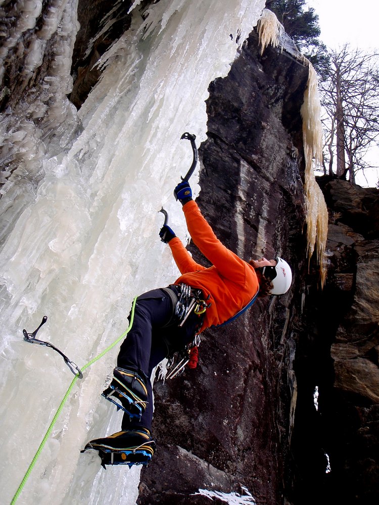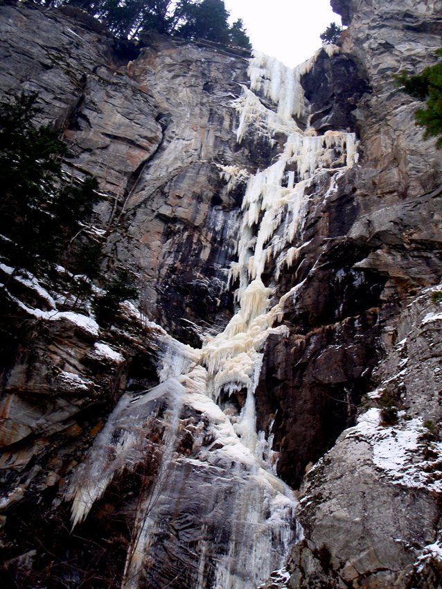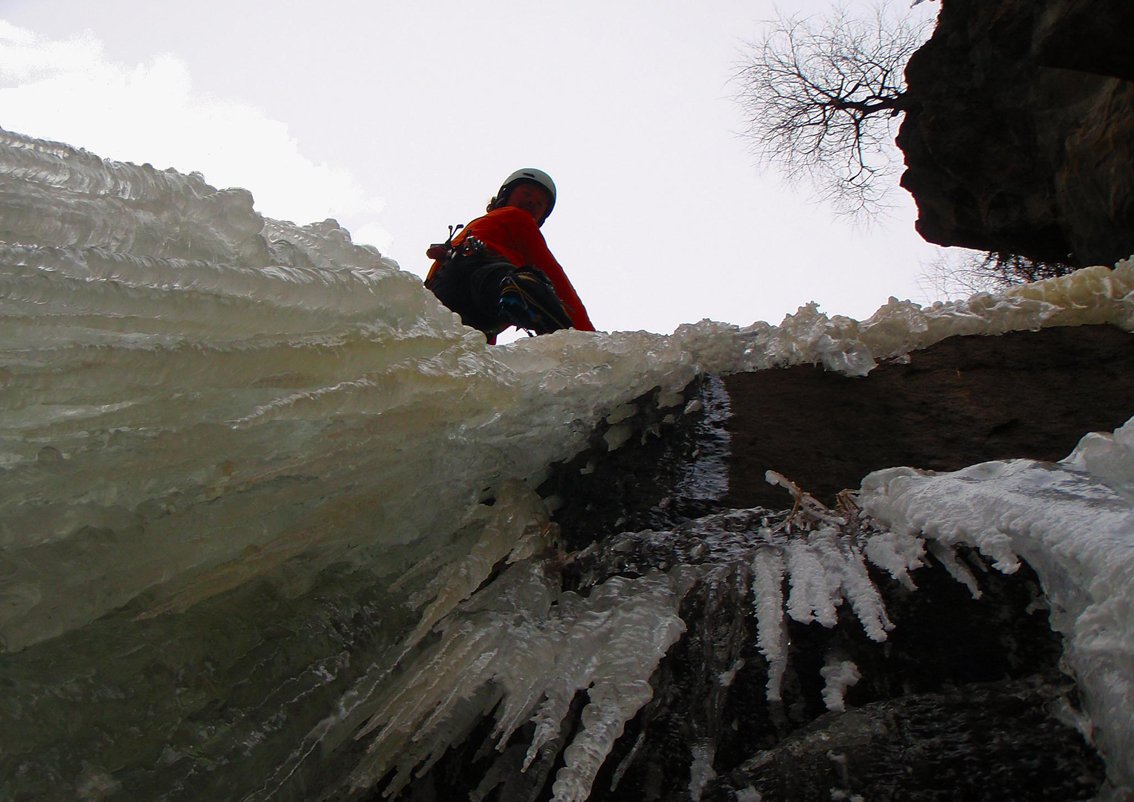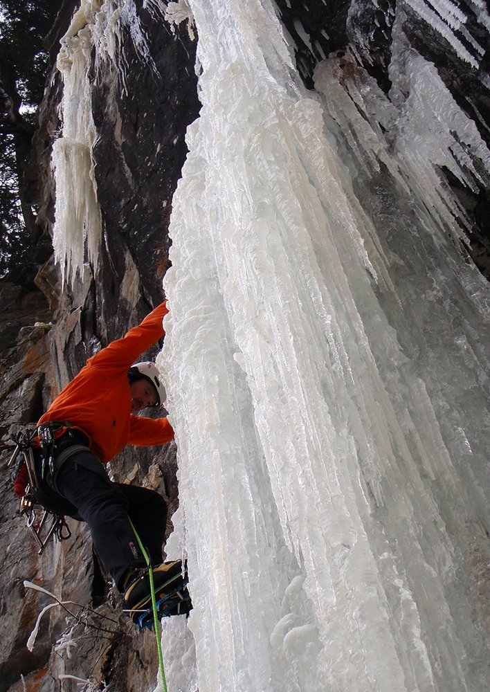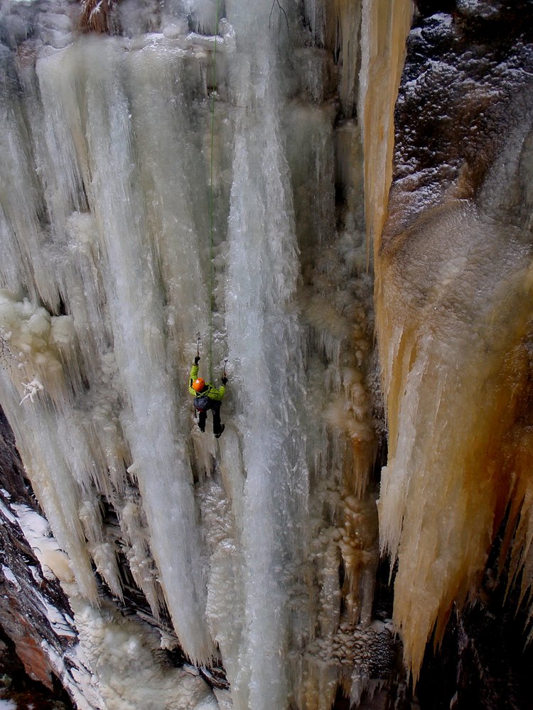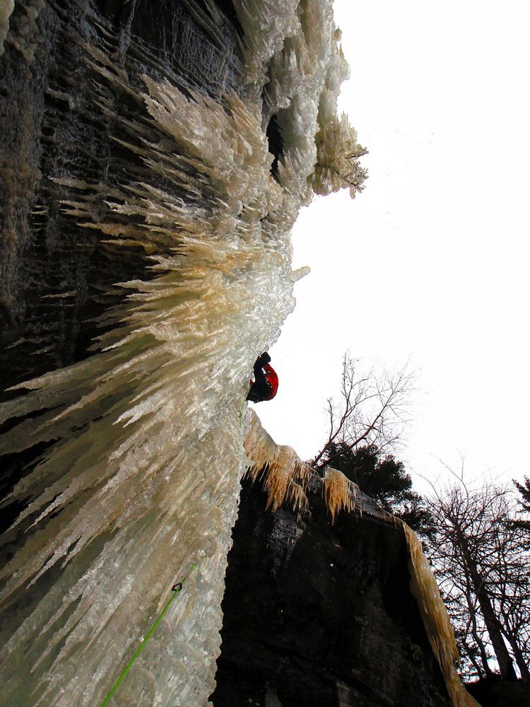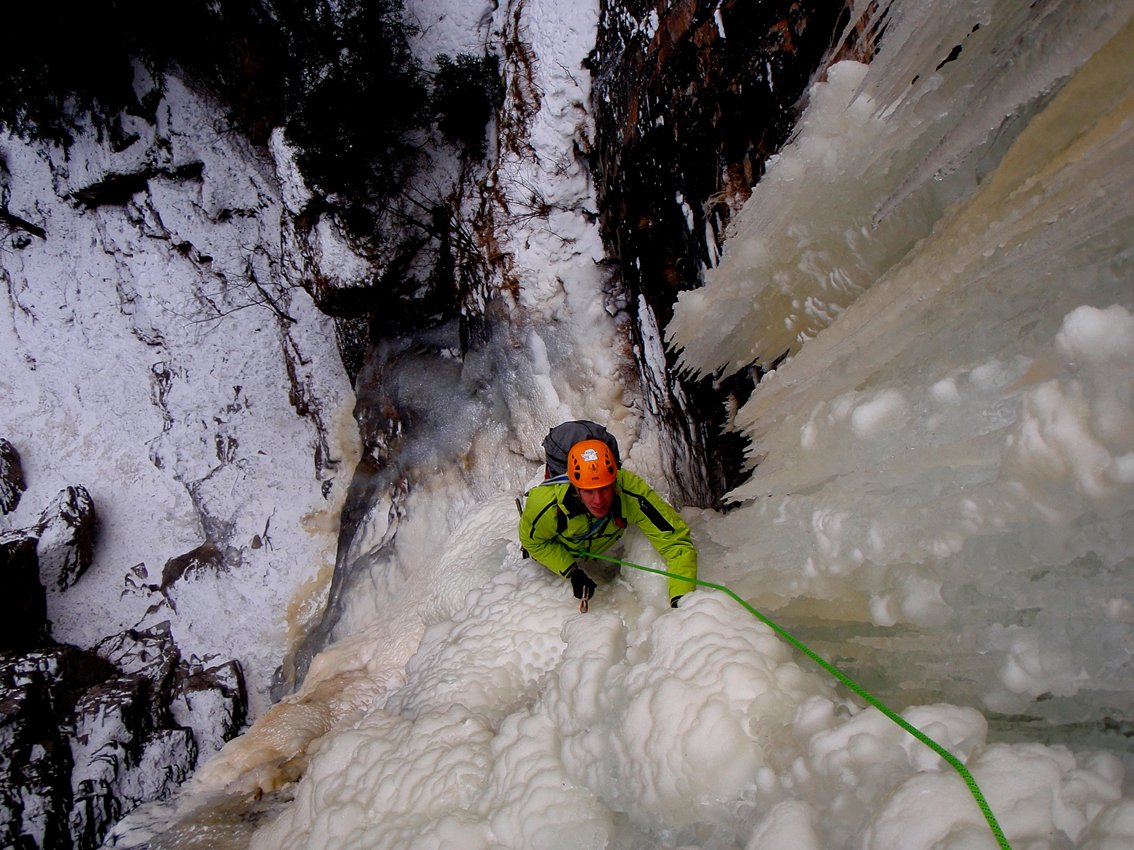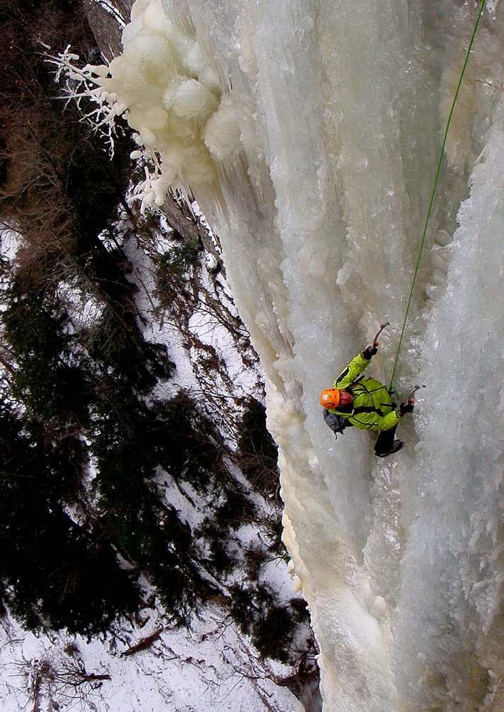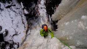 Ernsthafte Eiskletterroute im oberen Eisgrad! Der Fall ist sehr selten aufgeeist!