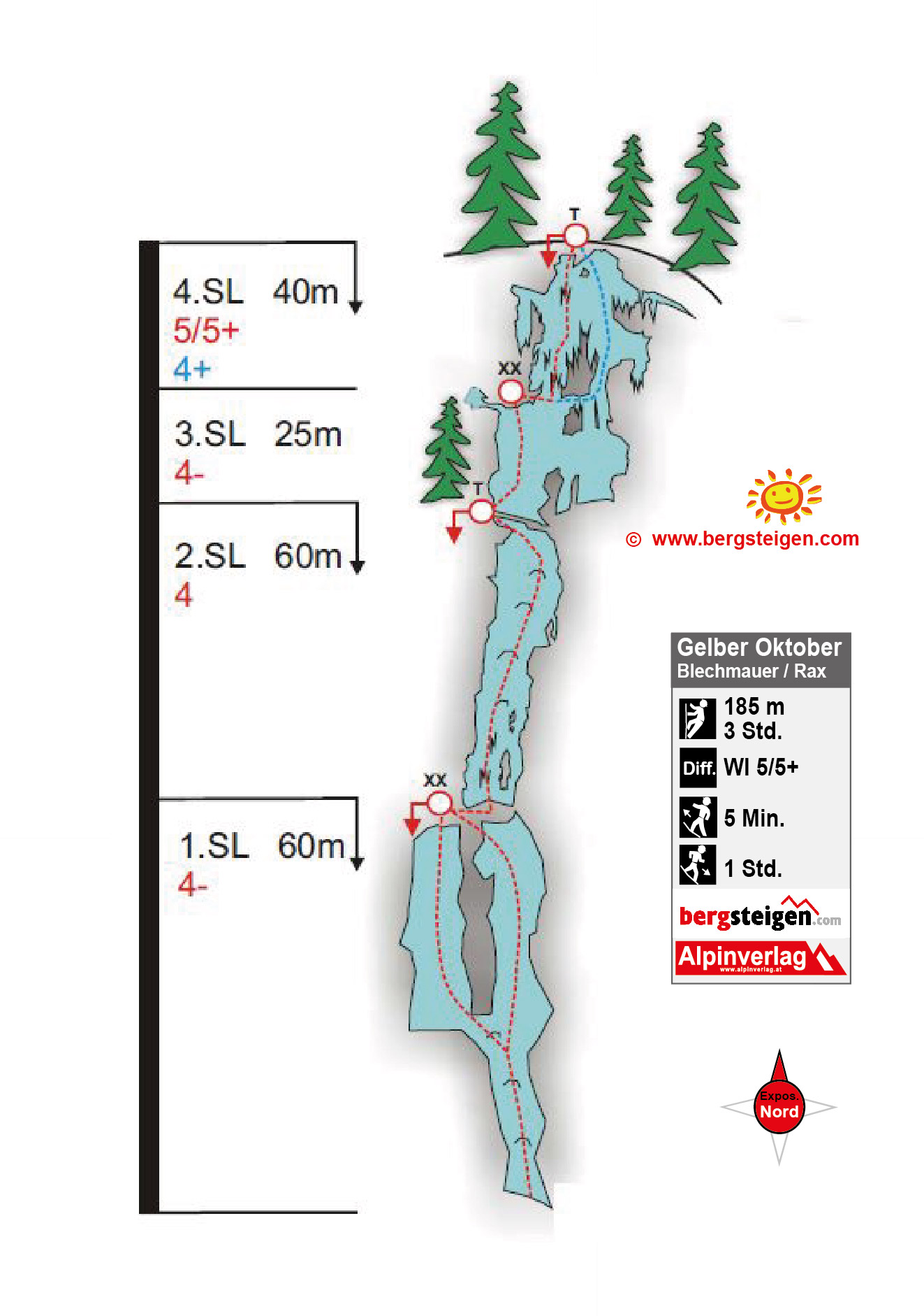 Nicht vor 1. Jänner klettern und nicht in höhere Waldregionen aussteigen (Jagd- u. Forstliches Sperrgebiet).
