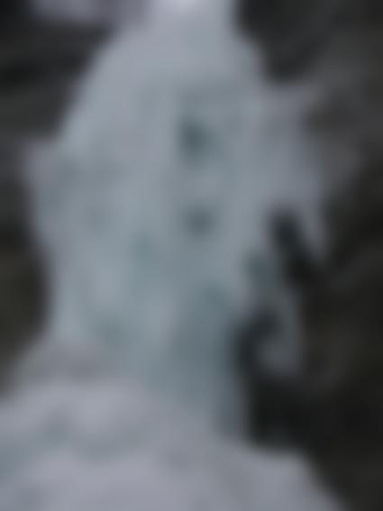 Ca. 50 Hm über steiles Waldgelände aufsteigen, dann orografisch ganz rechts über einen Eisgully Abseilen. Über den Eisfall Abseilen ist nicht anzuraten. Über Felsen Abseilen ist ebenfalls nicht zu empfehlen, da das Gestein sehr brüchig ist und sehr viele große Brocken locker sind.