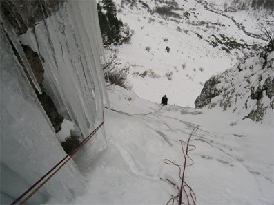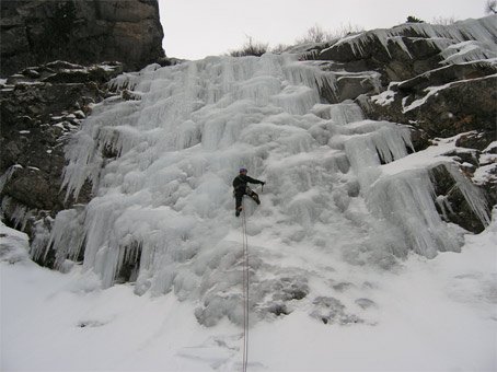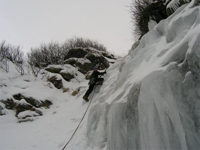Schöner und leichter Eisfall gleich links vom Tauerntunnel, der Fall ist nur in der ersten Stufe schwer, dann legt er sich deutlich zurück.