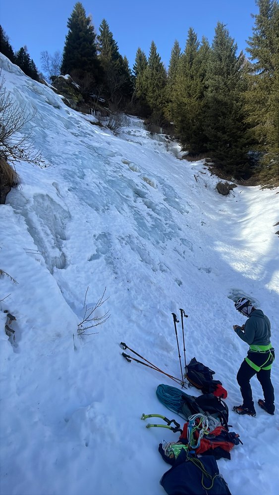 Schöner, breiter Eisfall, ideal zum Anfangen, da es nie recht steil wird.