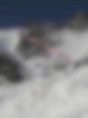 Steiler Firn bis 60° und am Schluß noch ein fast senkrechter Eisbuckel (den man aber auch rechts umgehen kann; 60°). Die untere Rampe ist nur bei aussreichend Firn machbar!