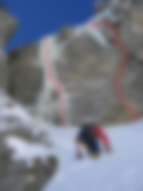 Mixedlinie gleich neben der Tour "Kaisersäule" an derGreimuth ostwand Erst Felsteil, anschließend steiler Zapfen.