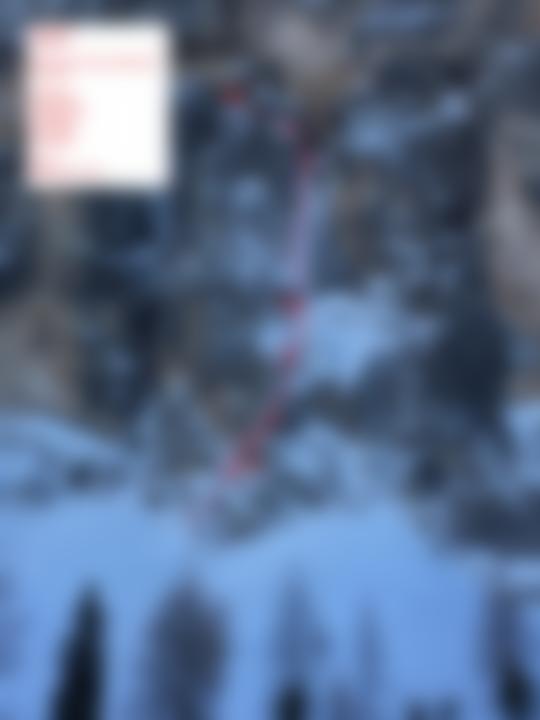 Die ersten beiden Seillängen werden über die Sommerroute "Via Elfi" von Mauro Bernardi geklettert. Danach verläuft die Route über den bereits von der Straße aus gut sichtbaren Eisstreifen in eine Grotte. Von dort durch einen kurzen Kamin in eine Rinne, die zum letzten Standplatz der Route L'Ciamin (2 Normalhaken) führt.