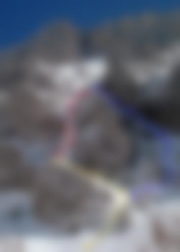 Entweder nach der 2. SL abseilen (50 m), oder nach der 3 SL a) bis zum 2. Stand zurückklettern oder b) orographisch links durch eine Rinne absteigen.