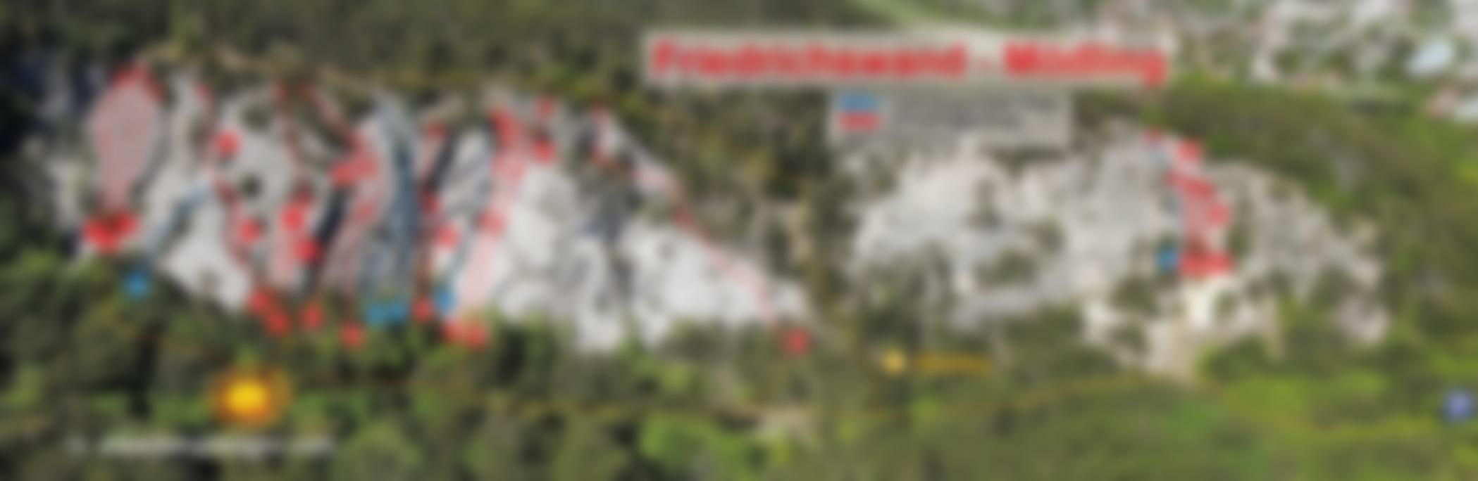 ACHTUNG! Die Friedrichswand ist als alpines Klettergebiet einzustufen. Mit objektiven Gefahren wie Steinschlag, brüchigem Fels und beeinträchtigter Haltbarkeit der Sicherungspunkte im Gestein ist zu rechnen! Routencharakter: Hauptsächlich stark geneigte Plattenkletterei, unterbrochen durch senkrechte bis stark überhängende, in den schweren Routen dachähnliche Plattenkanten. Öfters splittrig und brüchig; manchmal auch feste Platten. In den Routen wurden, besonders in den brüchigen Bereichen, speziell dafür gefertigte Klebehaken gesetzt. Jedoch sind diese nicht vor einem Ausbröckeln des umgebenden Gesteins sicher! Der Wandfuß ist besonders bei Regen und Unwettern UNBEDINGT zu meiden! Die Absicherung und die Beschreibung der Routen erfolgte nach besten Wissen und Gewissen; trotzdem kann keinerlei Haftung übernommen werden, da jeder Kletterer die Verantwortung für Routenauswahl und das Einschätzen der persönlichen Leistungsfähigkeit selbst übernehmen muß!