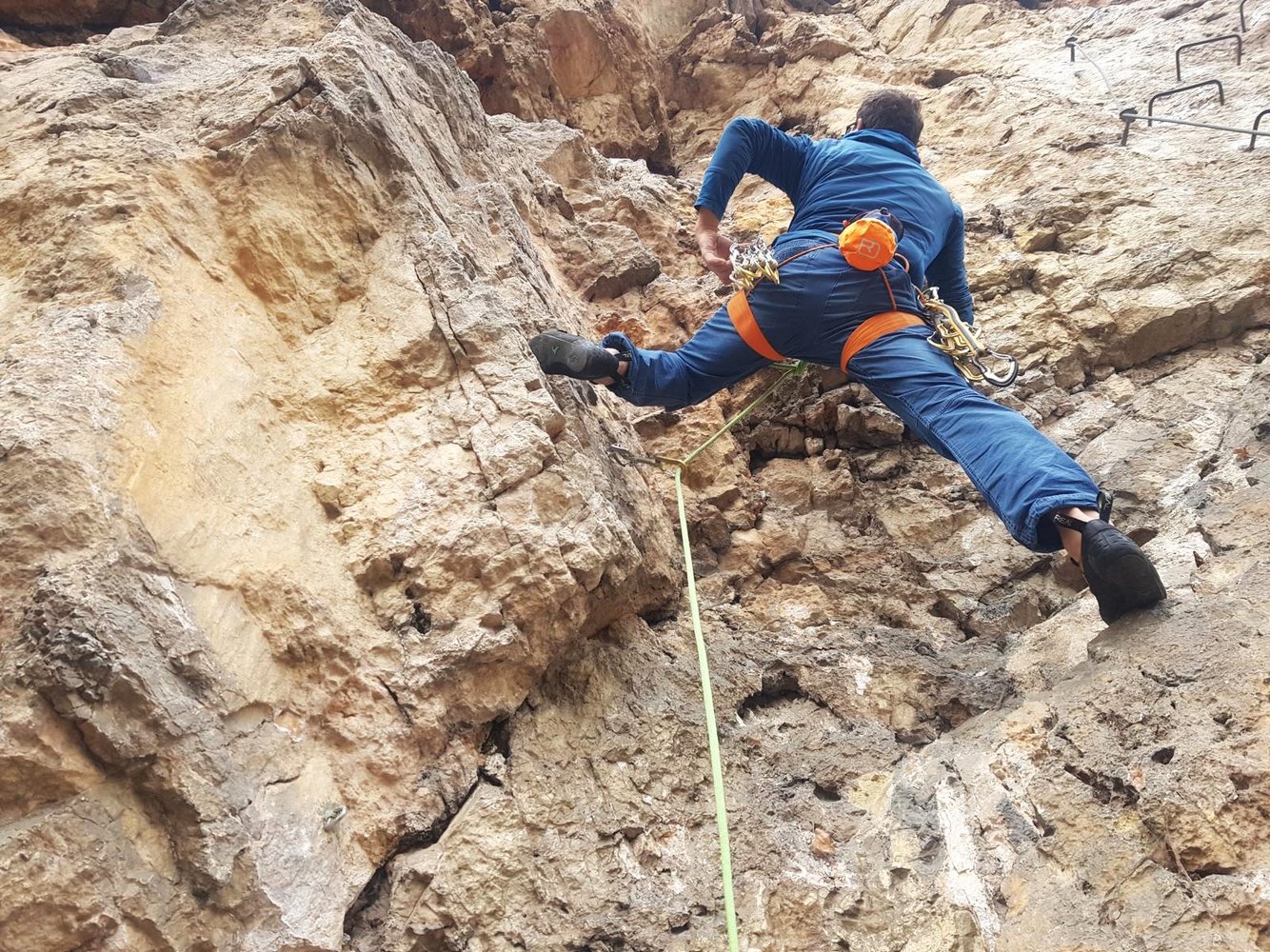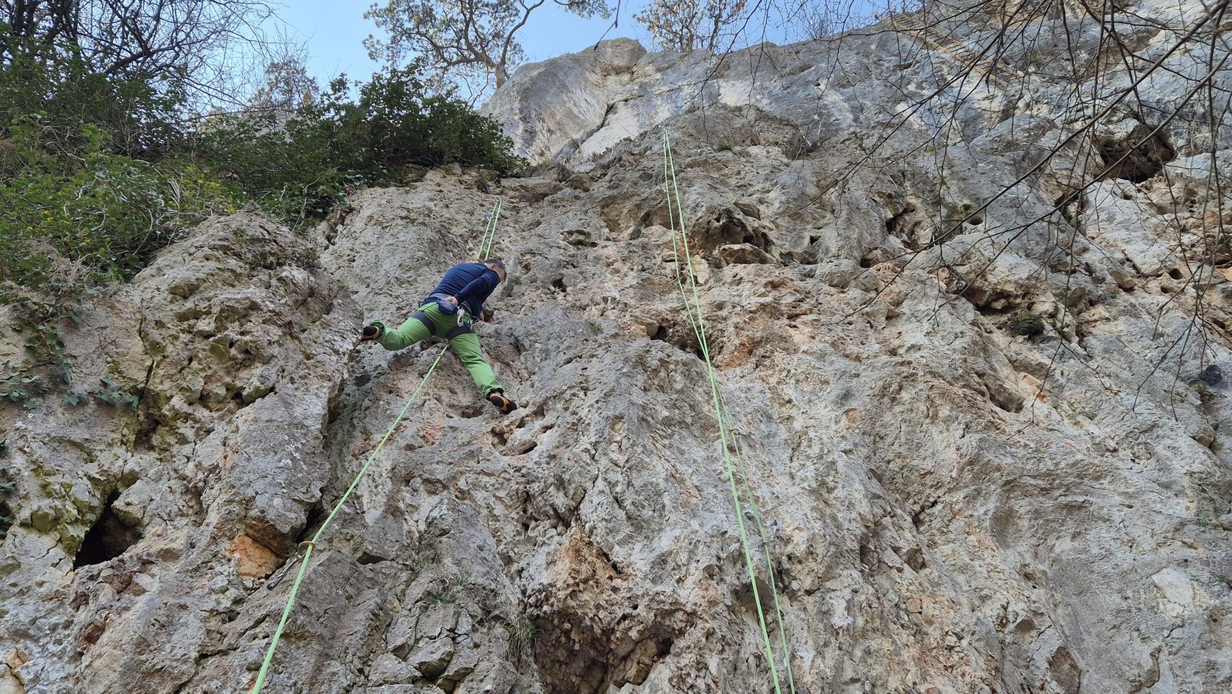 Gut mit Bohrhaken und Umlenkern gesichert.