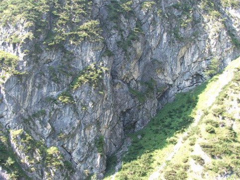 Halltalerklettergarten u. Biotop: Von der Hütte nach der ersten Brücke bis zu einem großen Rohr das über den Bach führt. Kurz danach führt ein Steig zu den Wänden, am rechten Rand befindet sich der Sektor Biotop.