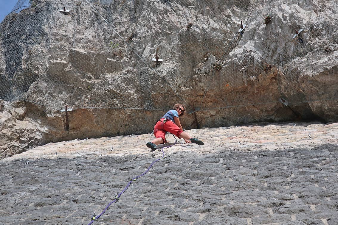 Mit Klebehaken und Umlenk-Karabinern ausgerüstet.