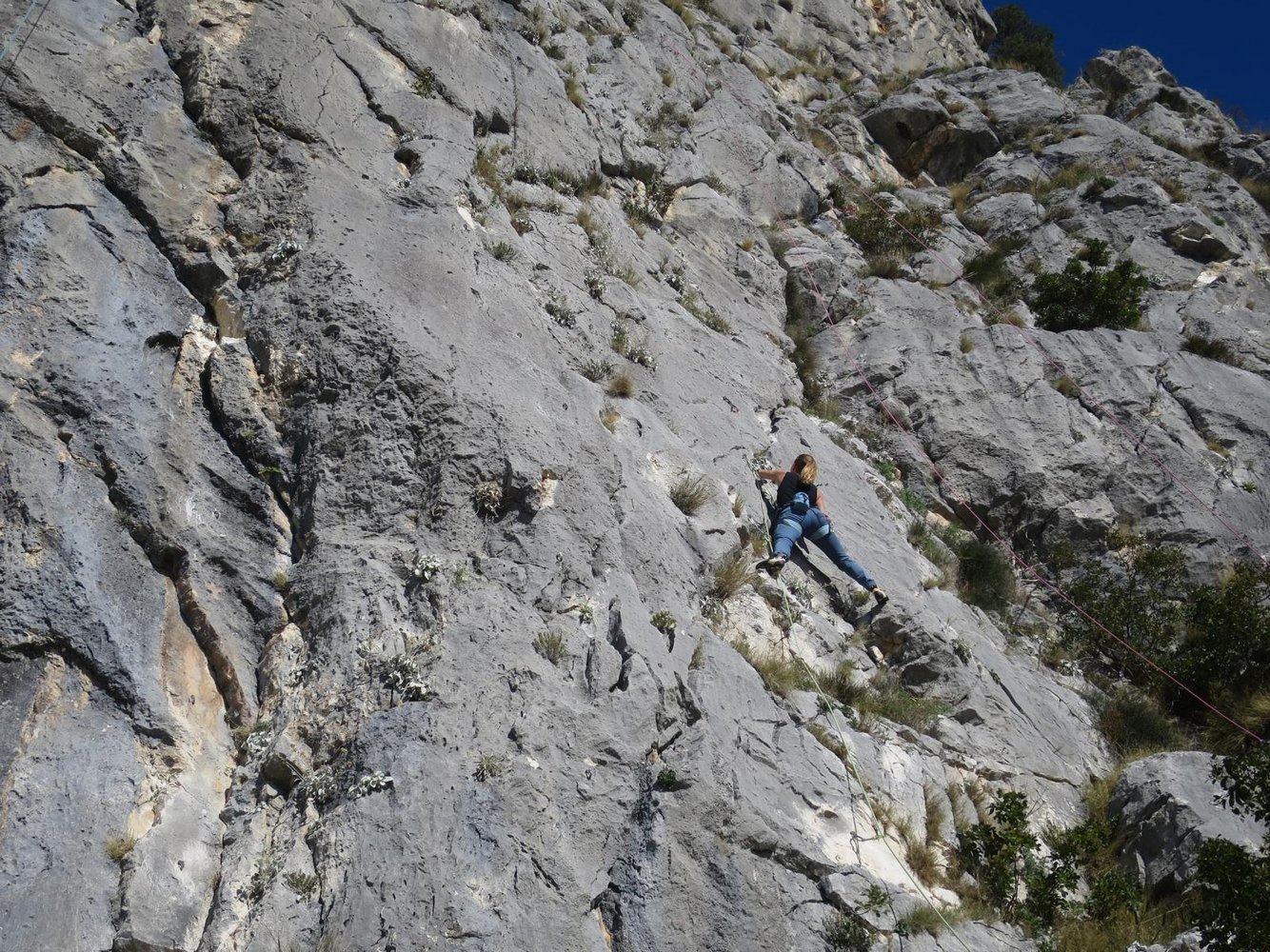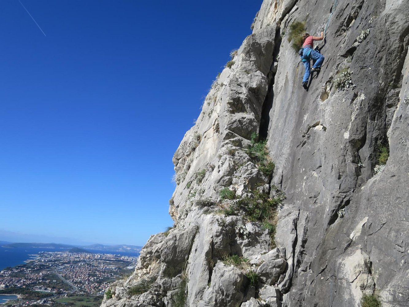 Schöner Klettergarten hoch über Split mit rd. 65 Routen. Der Fels ist perfekt, aber noch so wasserzerfressen wie in Omis oder Brela. Die Routen sind sehr gut abgesichert und teilweise auch mit Namensschildern am Einstieg ausgestattet. Die Kletterei ist primär plattig, aber es gibt auch steilere, sogar versinterte Touren in franz. 7ten Grad. Landschaftlich sehr schön und auch ruhig.