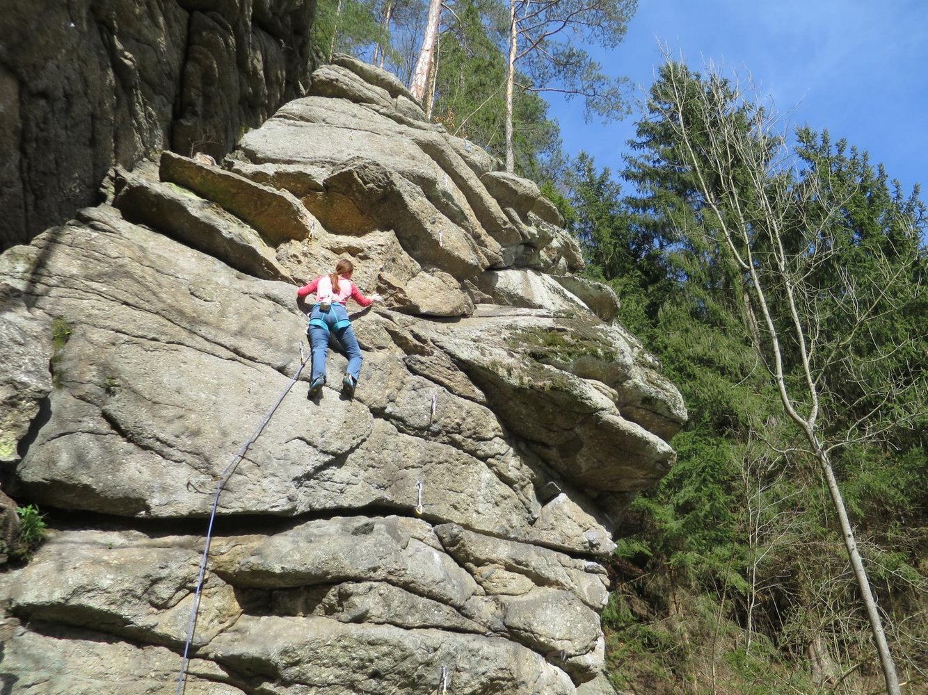 Vom Parkplatz geht bei der Brücke gehten orographisch liniks zwei Forststrassen ab. Jener (am Beginn Holztafel Burgsteig) die parallel zum Graben verläuft ca, 200 m nach Süden folgen und in einer Linkskehre (bei einer Eisenstange) auf Steigspuren zum Klettergarten absteigen