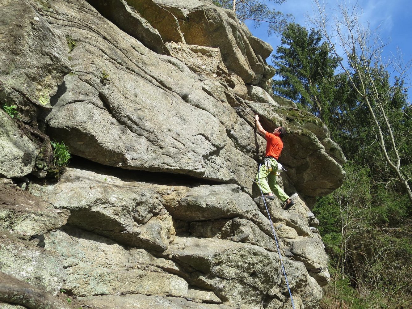 Die südwestseitig exponierte Wand weist rund 50 sehr gut mit Bohrhaken abgesicherte Routen auf, wobei der Schwerpunkt rund um den sechsten Schwierigkeitsgrad liegt. Die bis zu 20 m hohe Wand ist aus sehr grobkörnigem Granit, der etwas ans Konglomeratgestein erinnert.