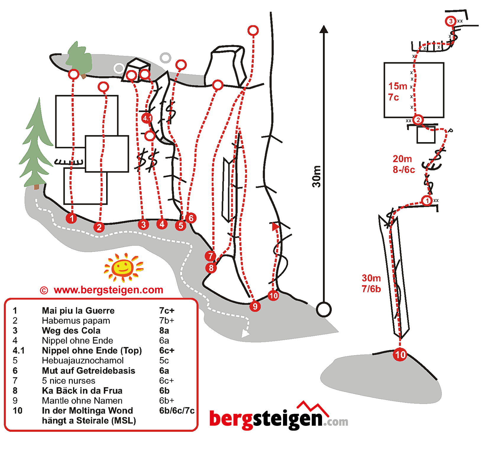 Art der Kletterei: abwechslungsreich, vorwiegend aber technische Kletterei