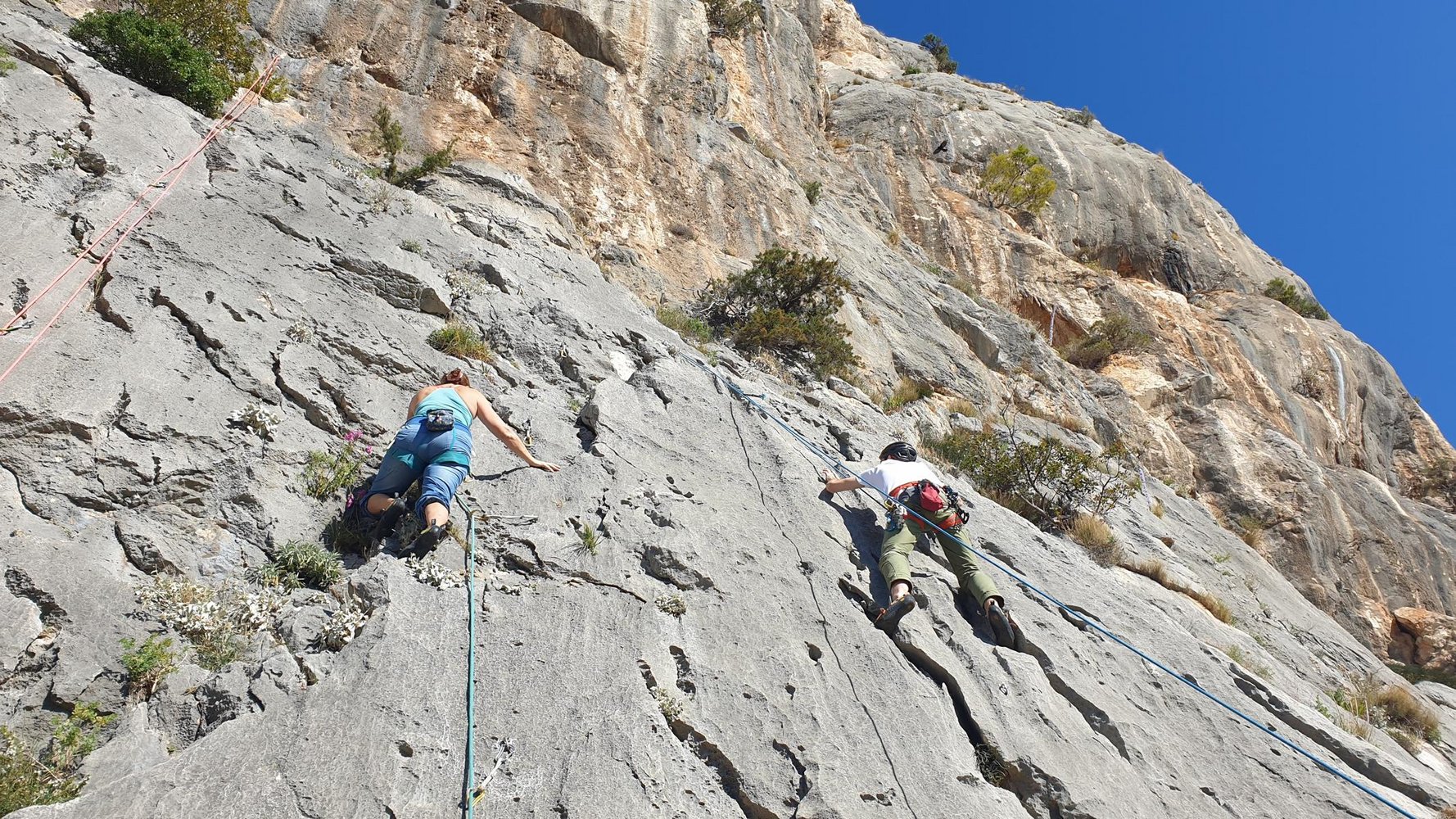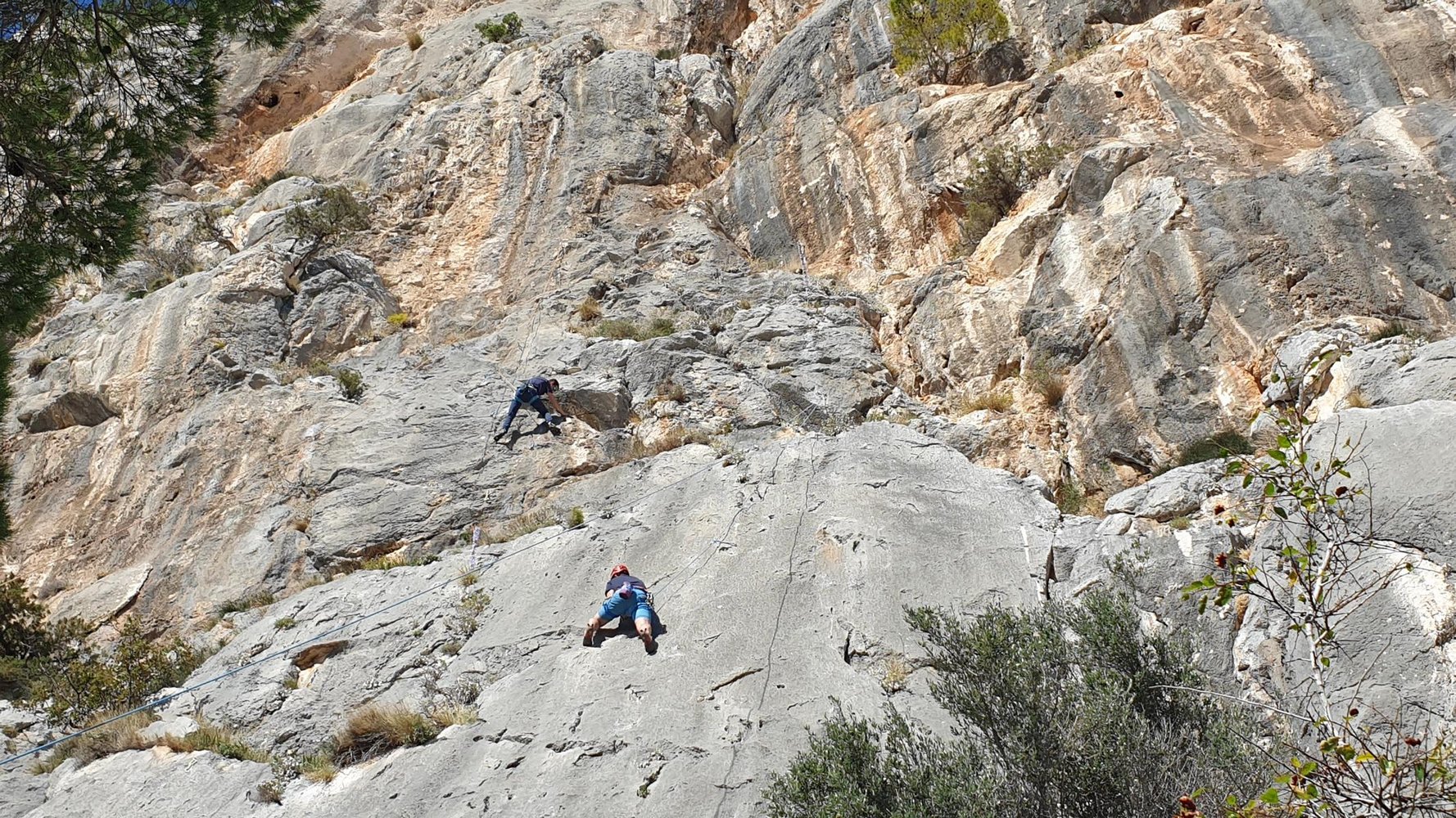 Sehr gut mit Bohrhaken gesichert. Die letzte Seillänge der Multipitch-Route Canadair ist mit Friends und Keilen abzusichern.