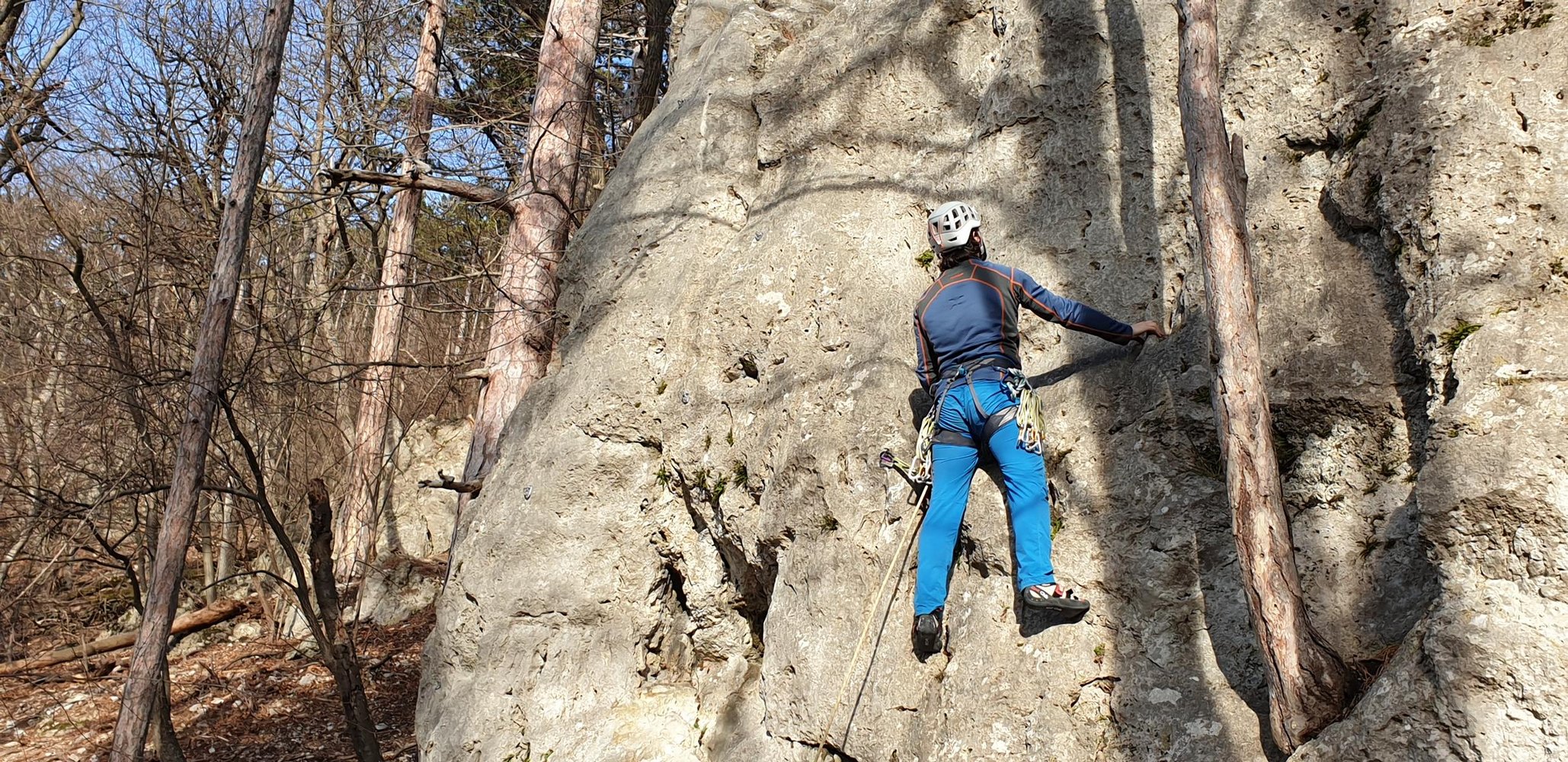 Die maximal 20 Meter hohe Felsformation ist nach Südwesten ausgerichtet und hatte sich jahrelang im dichten Unterholz des Walds vor der Erschließung erfolgreich versteckt, bis sie schließlich 1991 von Roman Patlik entdeckt und gemeinsam mit Christian Hacker erschlossen wurden. Die rechten drei neuen Touren stammen von Chr. Schuller. Inzwischen hat die oberhalb des Jammerwandls gelegene Wand dieser schon fast den Rang abgelaufen. Man ist hier nicht so direkt an der Straße und mehr in der Natur. Auch im Winter ist die Wand länger in der Sonne. Die Kletterei ist plattig und links steil mit Löchern, die Absicherung sehr gut.