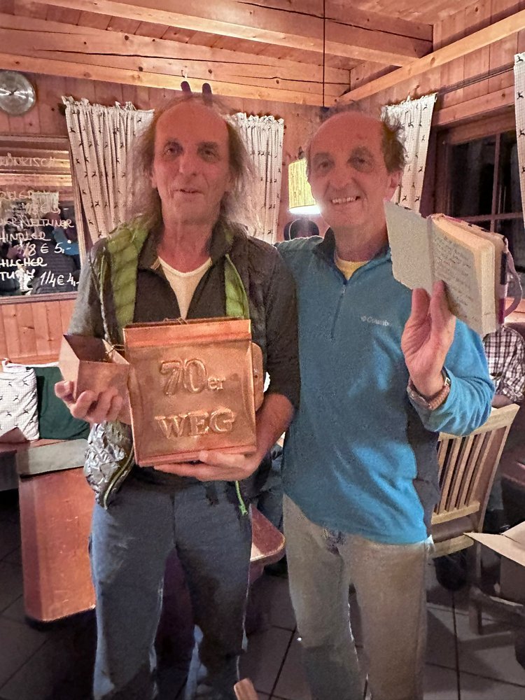 Die Schmidt-Zwillinge bei der Übergabe des Routenbuchs , Foto: Christian Stögner