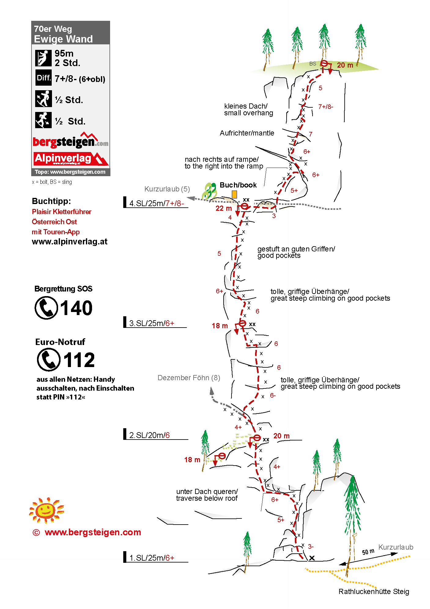 Kletterlänge / Gesamthöhe / Kletterzeit / Gesamtzeit 95 m  /  260 Hm