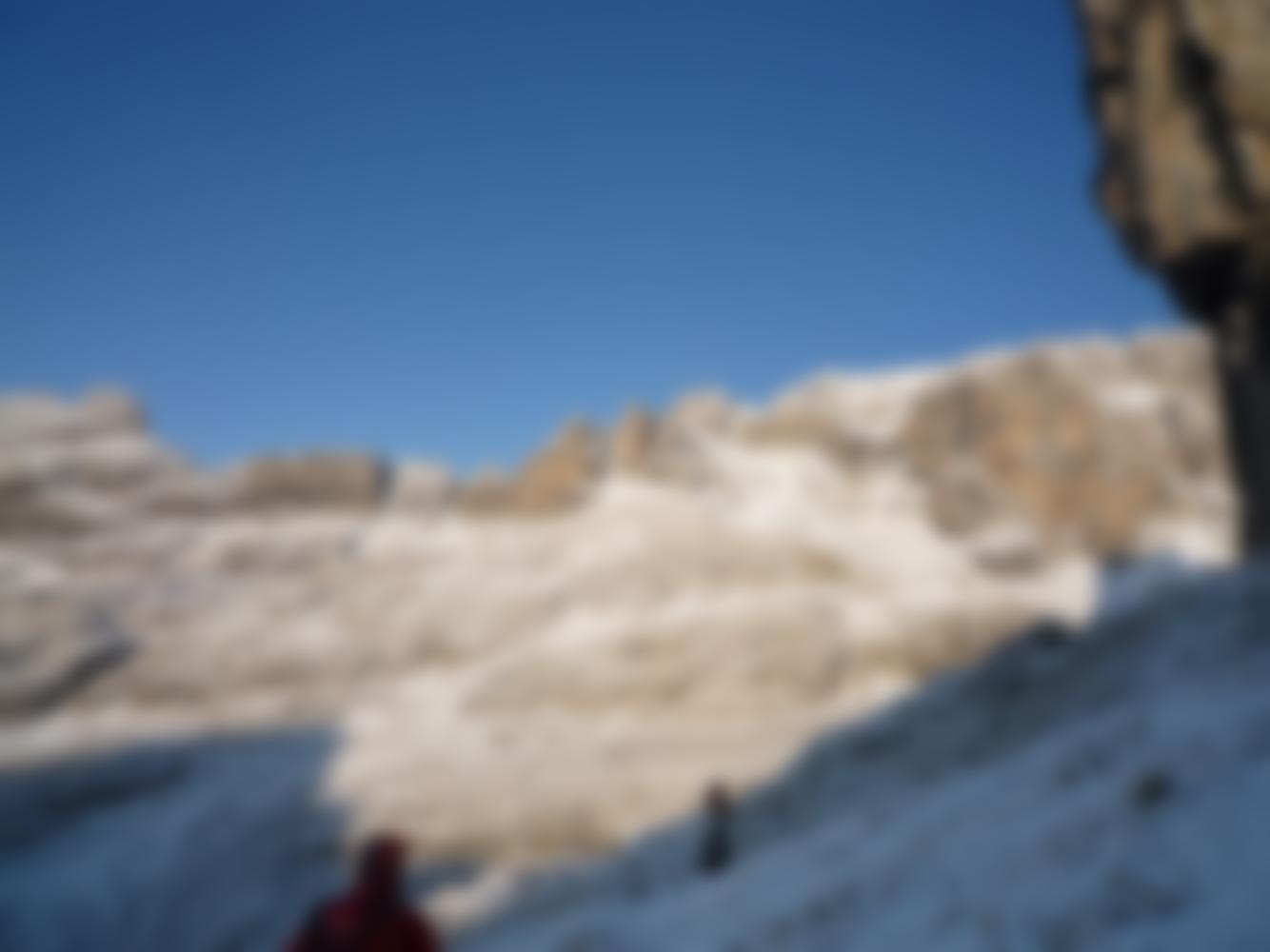 Wie aufstieg, wobei man sich über den Kamin (Schlüsselstelle) abseilen kann. 3 1/2 Std. bis zum Rif. Pedrotti und weitere 3 Std. bis zum Parkplatz beim Rifugio Valesinella.