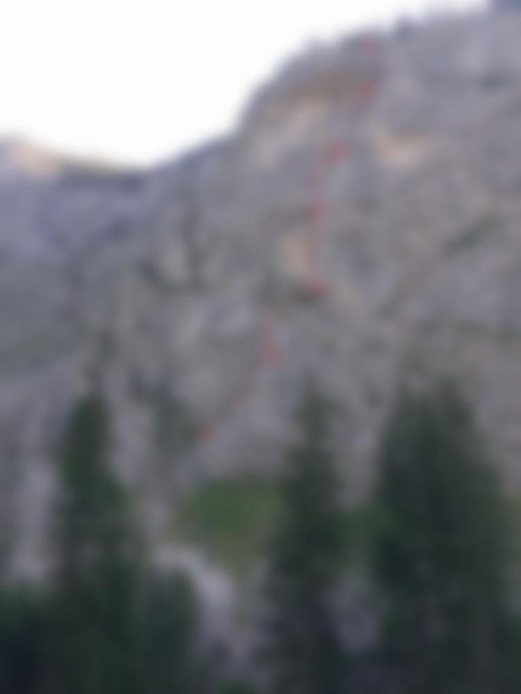 6SL 6/6+ 35 m zuerst Riss und Kamin bis zu einem kurzen brüchigen Überhang. Danach Schrofengelände bis zu Stand an Baum.