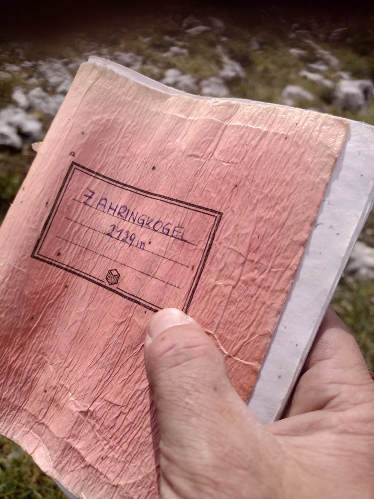 Gipfelbuch, ...welches ungefähr aus den 1980er Jahren stammt und von der einen oder anderen (wilden) Begehung erzählt, die heute wohl keiner mehr machen würde., Foto: Höll Norbert