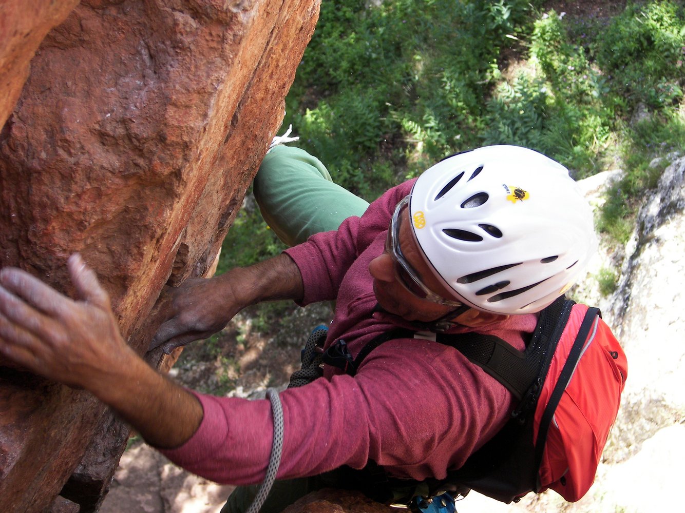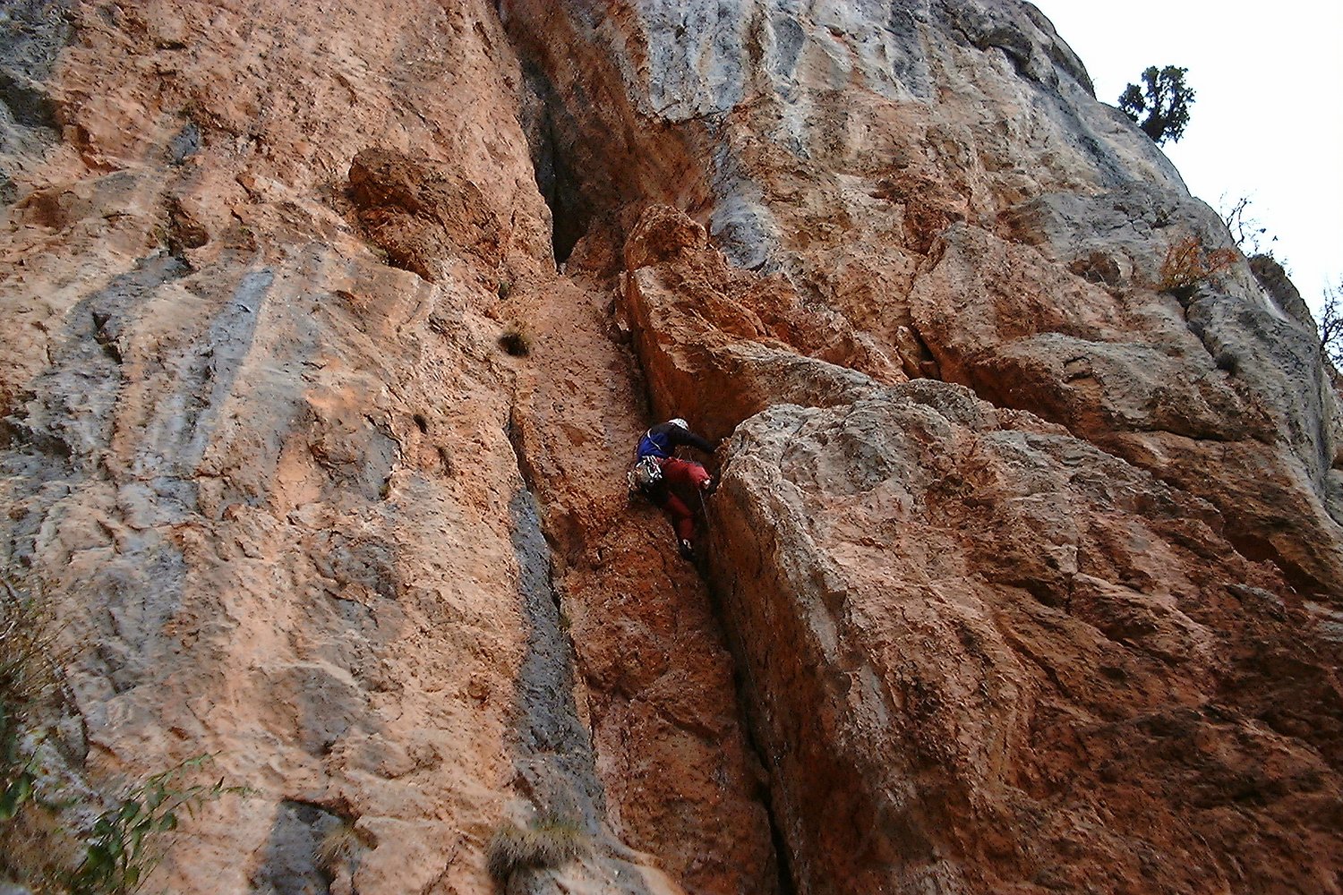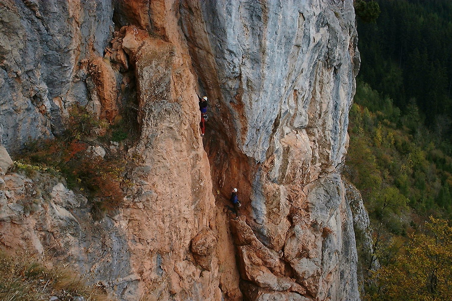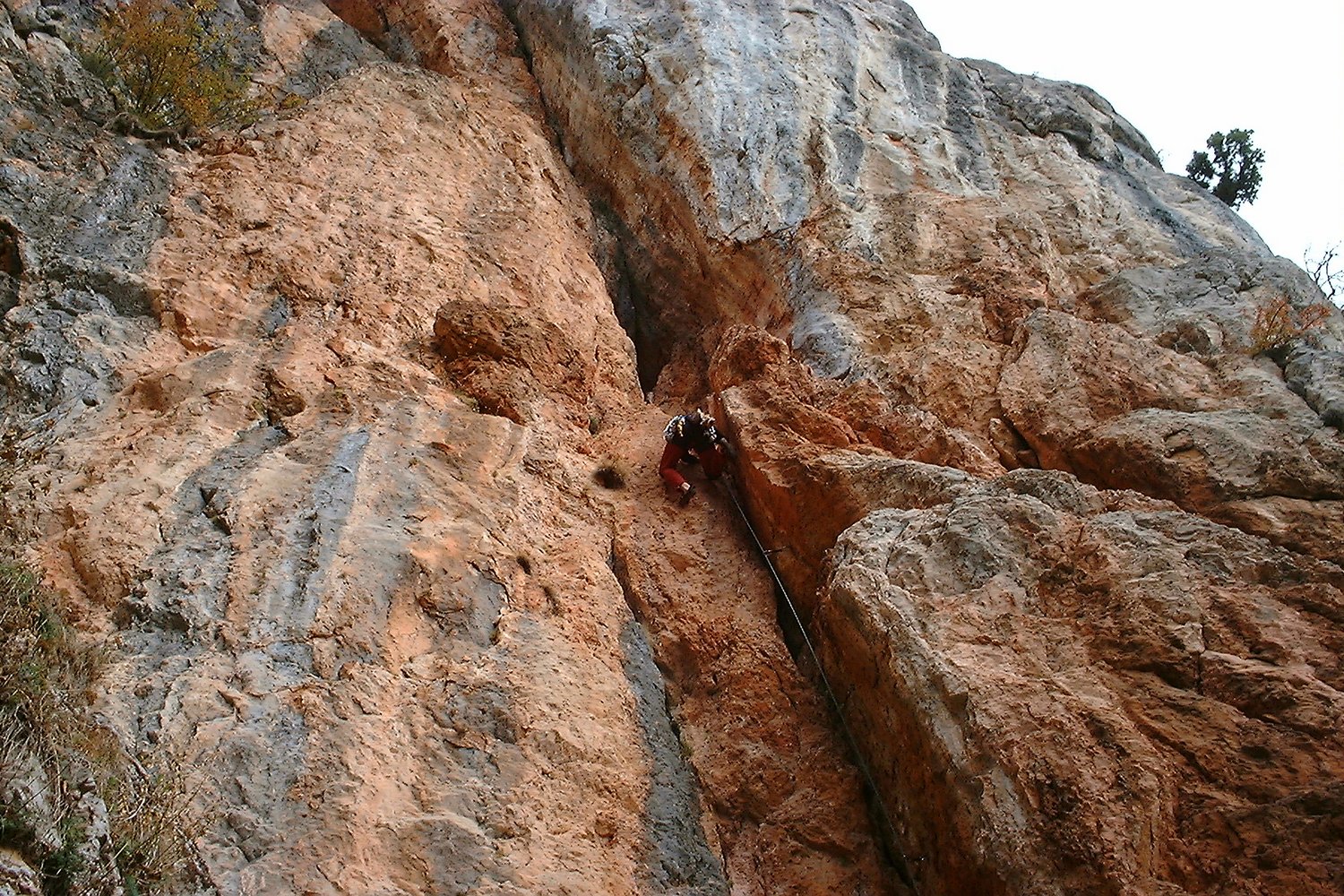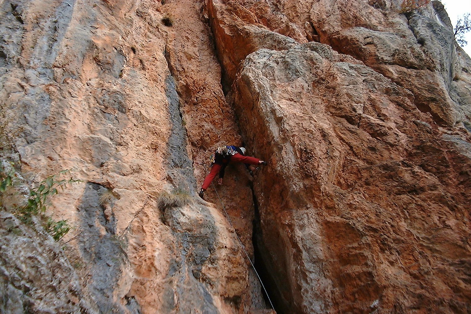 Sehr schöne und abwechslungsreiche Kletterei, die in den ersten beiden Längen durch eine sehr steile, beeindruckende rote Verschneidung führt. Es folgen ein toller grauer Pfeiler und eine Abschlusswand. Die Route wurde saniert und ist jetzt sehr gut mit NH und BH gesichert, wobei auch die Normalhaken von sehr guter Qualität sind.