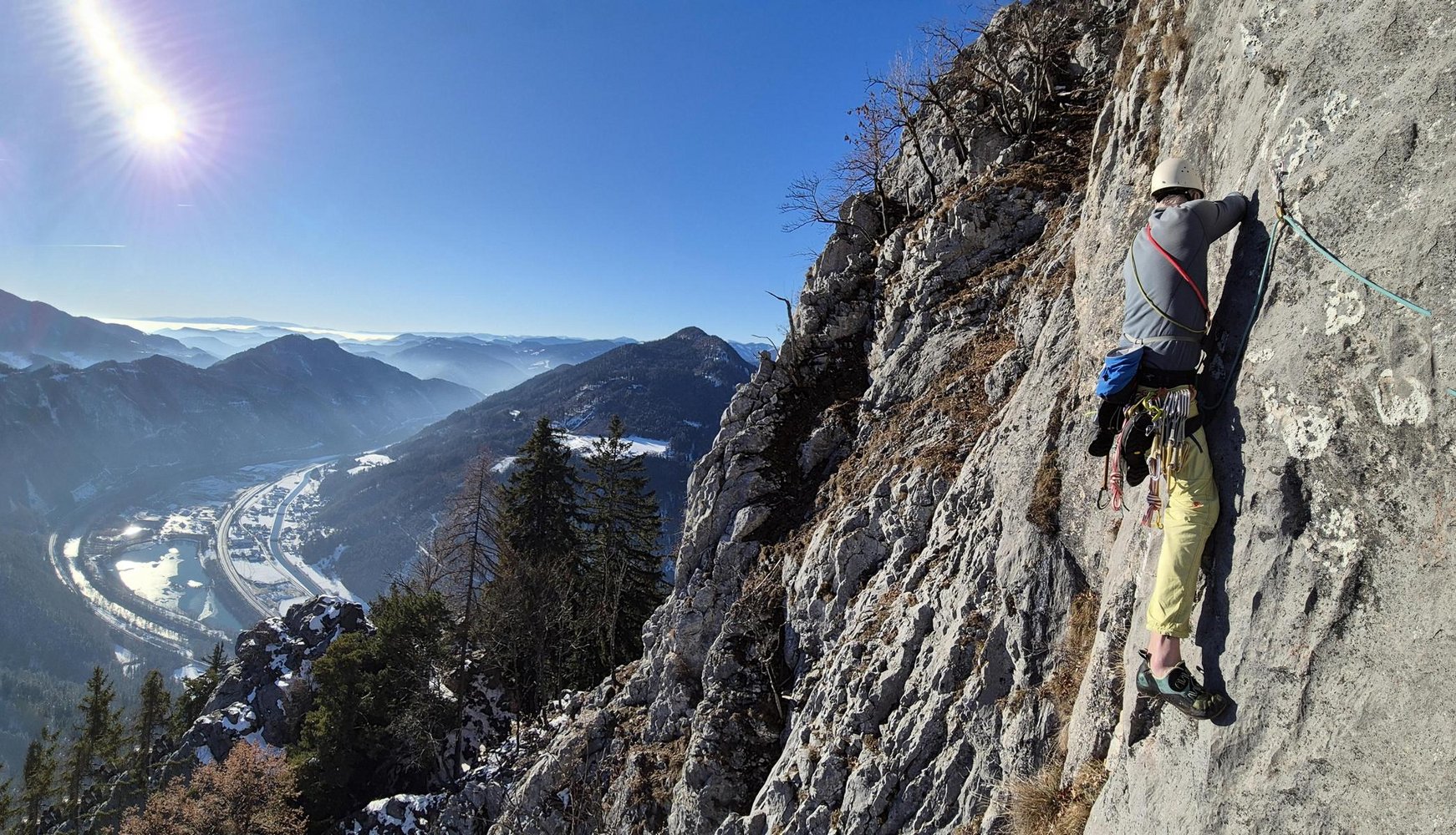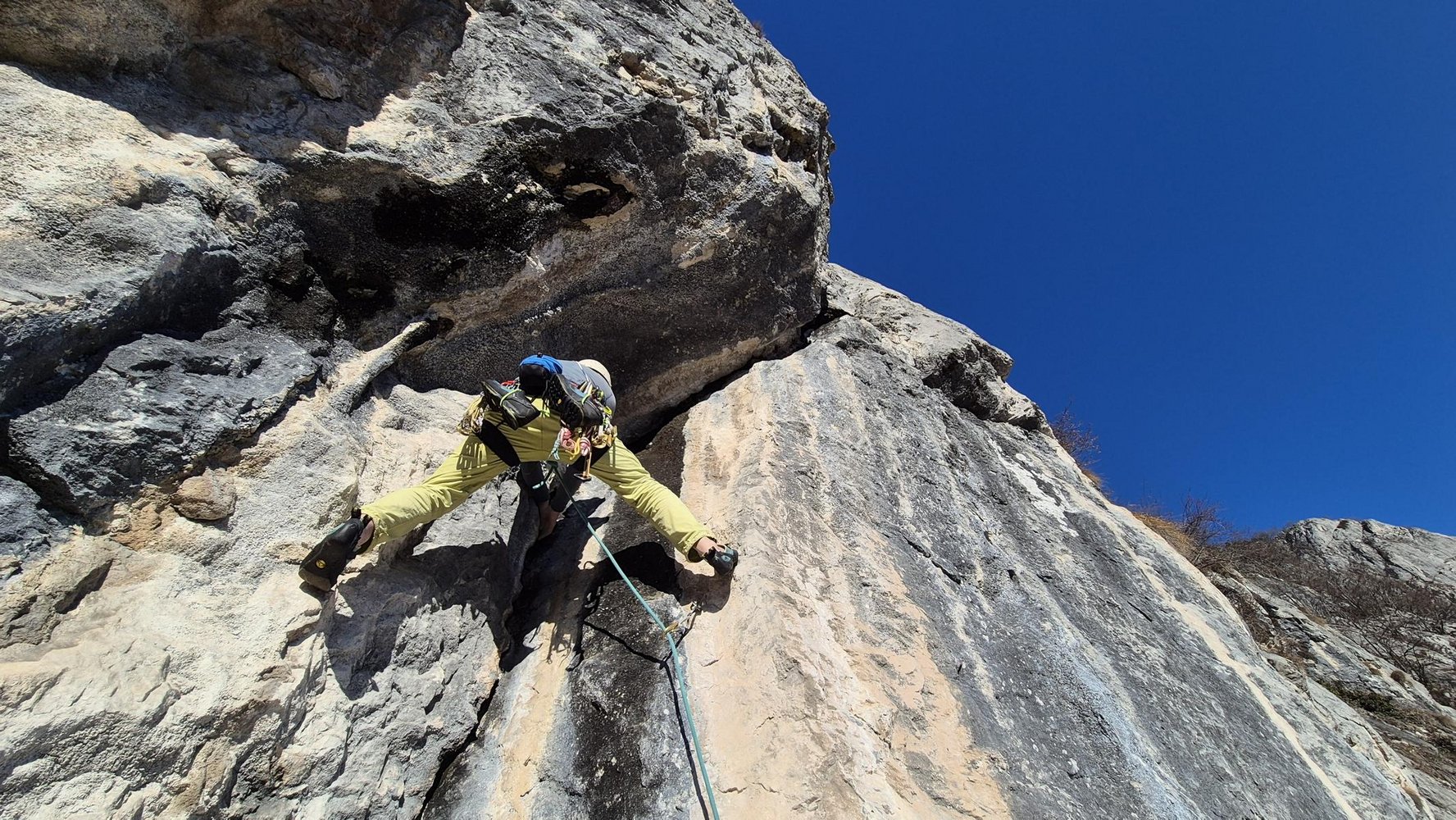 Tolle und sehr abwechslungsreiche Route zwischen Winnetouweg und Eldorado. Die Route wurde erst 2025 erschlossen, ist sehr gut gepuzt und führt, abgesehen von zwei Übergangs-Seillängen im Mittelteil immer an perfekten Fels durch die Breite Wand. Die Absicherung ist gut, aber die Tour ist nicht übersichert.