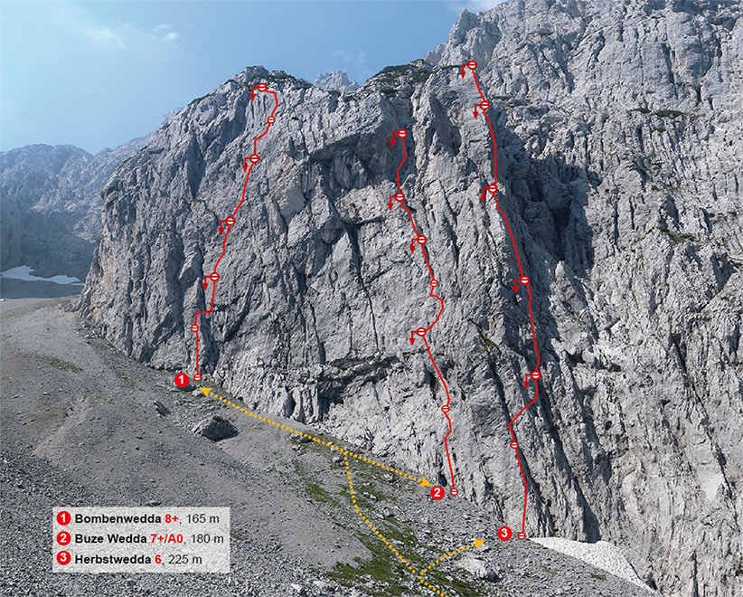 Der Routenverlauf der "Herbstwedda" am Ostwandsockel des Predigtstuhls
