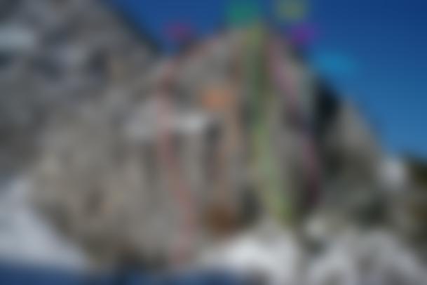 6 Seillängen 8+, (7-/A0): 7/7+, 7, 7+/8-, 8+, 7 und 7-