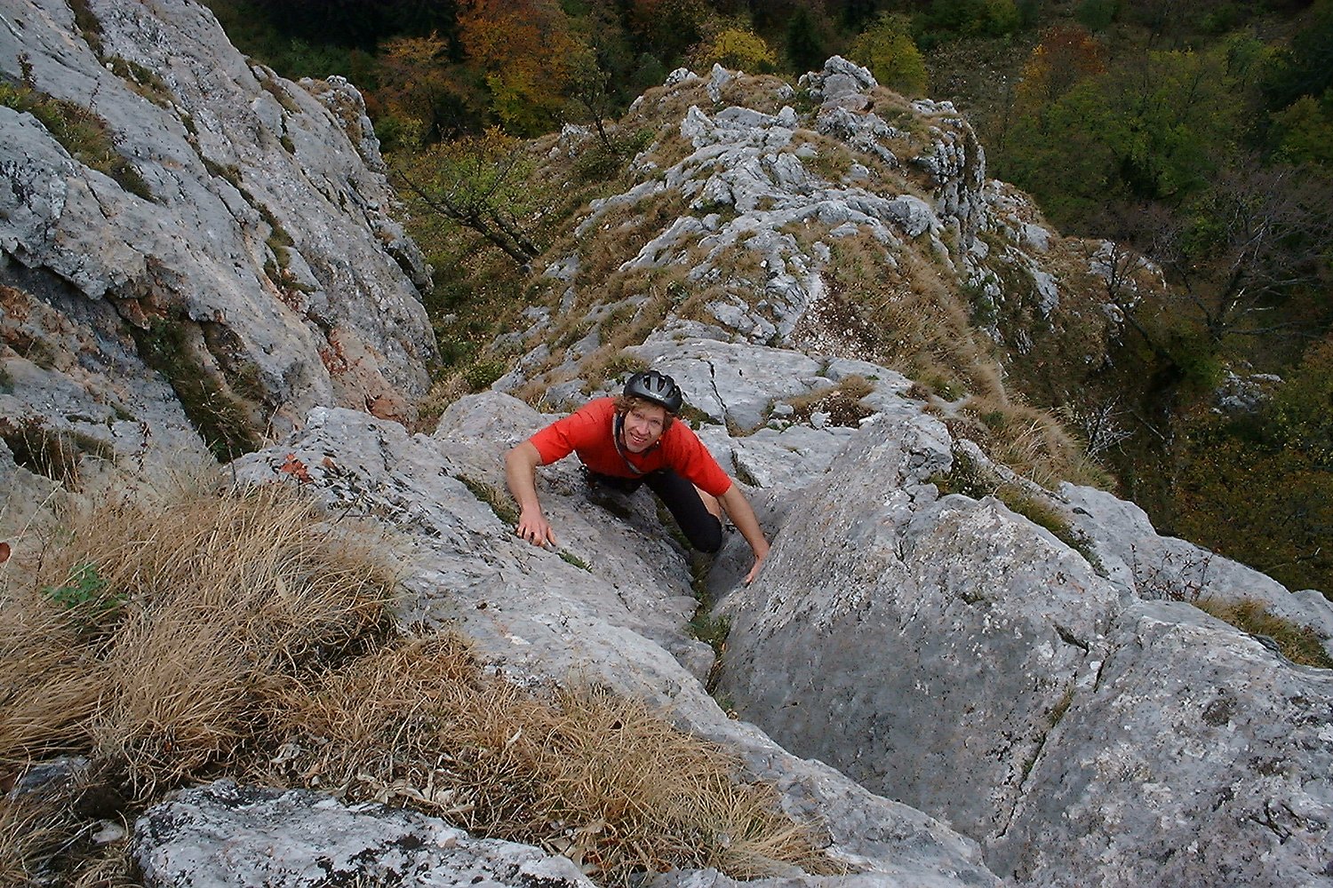 Sehr schöne Gratroute auf dem linken Ende der Roten Wand. Die Kletterei ist bombenfest und etwas inhomogen. Die Hangelquerung in der vorletzten Seillänge ist einfach toll und gar nicht so schwer. Die Route ist an den schweren Stellen gut mit BH gesichert, im ganz leichten Gelände muss man etwas wegsteigen. Leider schon etwas abgeklettert.