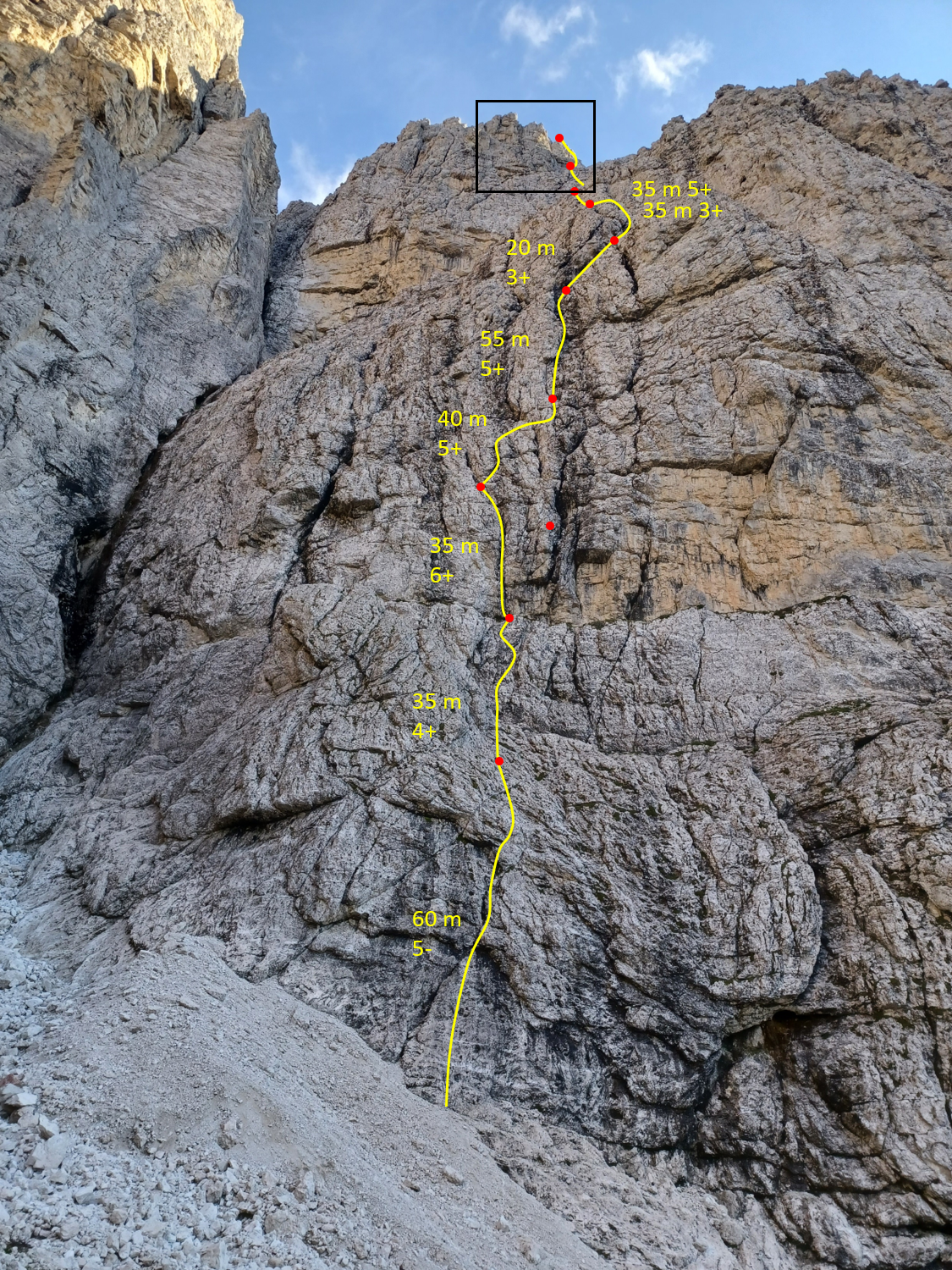 Achtung: aufgrund des supergriffigen Dolomits bleibt das Seil leicht hängen und ist das Abseilen zeitraubend - deshalb ausreichend Zeit dafür einplanen.