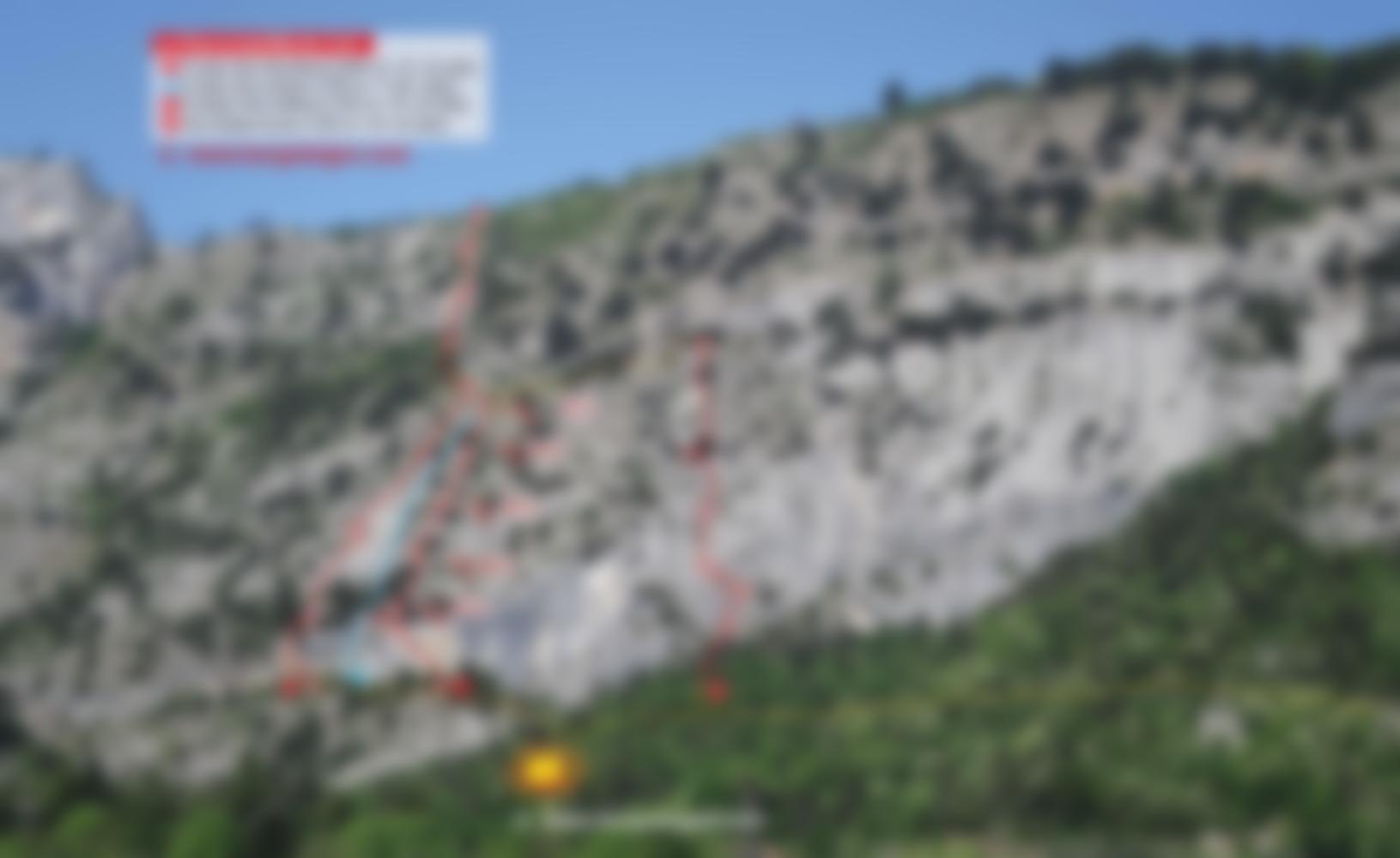 Zur Pizzeria und die Straße kurz zurück in Richtung Arco, ein Steiglein führt hinauf zum Klettergarten (mit einem markanten Doppelrissdach). Noch unterhalb der Felsen auf Pfadspuren nach Links - man quert länger im Gebüsch und kommt am Ende auf ein Band. Auf diesem bis zum Einstieg (Ringhaken und Aufschrift).