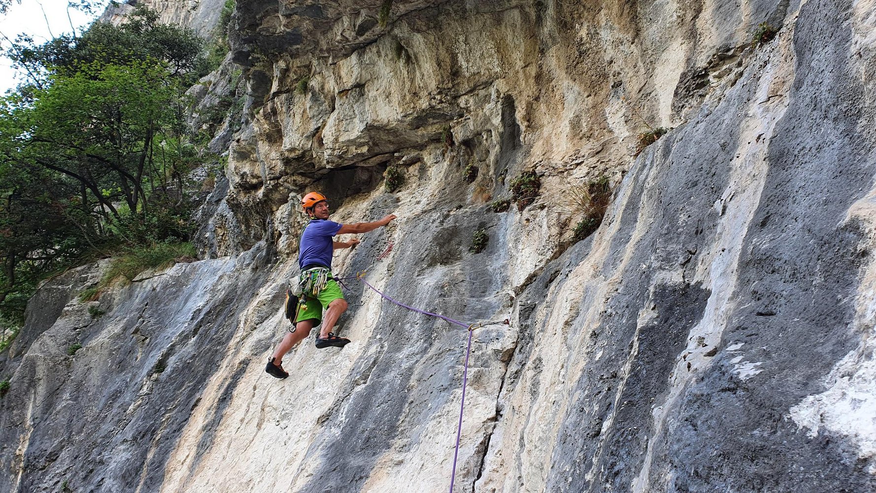 Giuliano Stenghel war einer der Haupterschließer der Felsen um Arco. Kurz nach seinem Tod hat ihm Florian Kluckner - ebenfalls einer der großen Erschließer im Sarcatal - an der Parete Dallas diese Tour gewidmet. Mit dem gleichen magischen Spürsinn von Sten suchte Florian Kluckner einen Weg durch die steilsten Überhänge der Wand. Die Kletterei ist sehr abwechslungsreich und anhaltend schwierig bis zum Schluss. Die Absicherung ist gut, zwei Stellen können mit Cams entschärft werden. Der Fels ist sehr gut und die Tour ist auch perfekt geputzt und empfiehlt sich wegen der nordwestlichen Ausrichtung vor allem für heiße Tage.