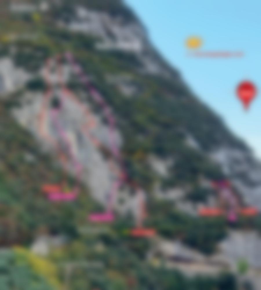 Perfekt abgesicherte Plaisir-Route oberhalb der Ponalestraße. Man klettert immer entlang einer Kante und hat schöne Blicke hinunter zum Gardasee. Wer den direkten Einstieg wählt, muss den oberen 6ten Grad beherrschen, aber auch der Nachsteiger hat bei der üppigen Bohrhakenabsicherung beim direkten Einstieg kein Problem. Ein netter Zu- und Abstieg zu Fuß runden das schöne Klettererlebnis ab.
