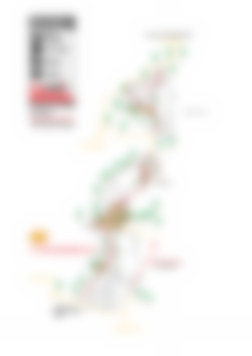 Die Route ist mit schwachen roten Strichen markiert, die aber nicht leicht zu erkennen sind.