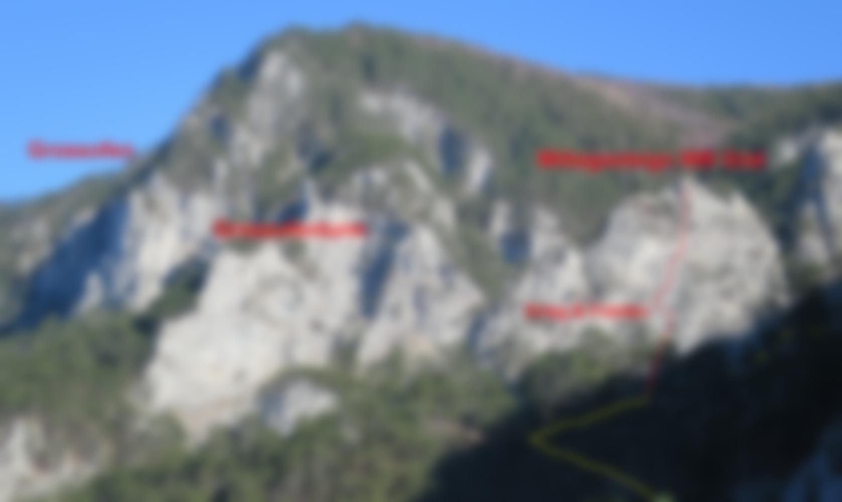 Erste Seillänge konstant schwier, nach oben hin immer leichter werdend.